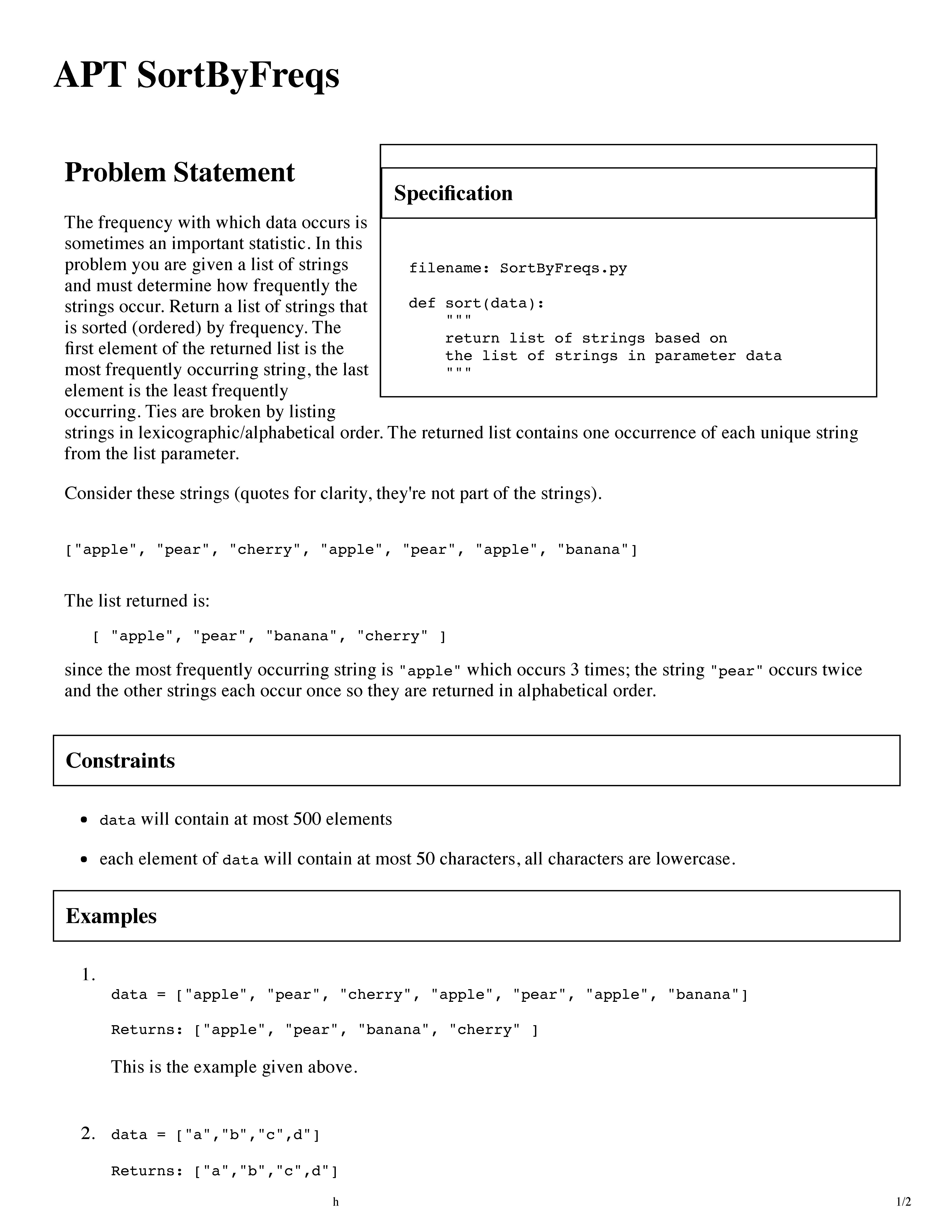 APT SortByFreqs Problem Statement The frequency with which data o...
