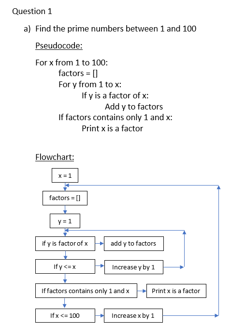 Question 1 Write the pseudo-codes and flowcharts for part (a) and ...