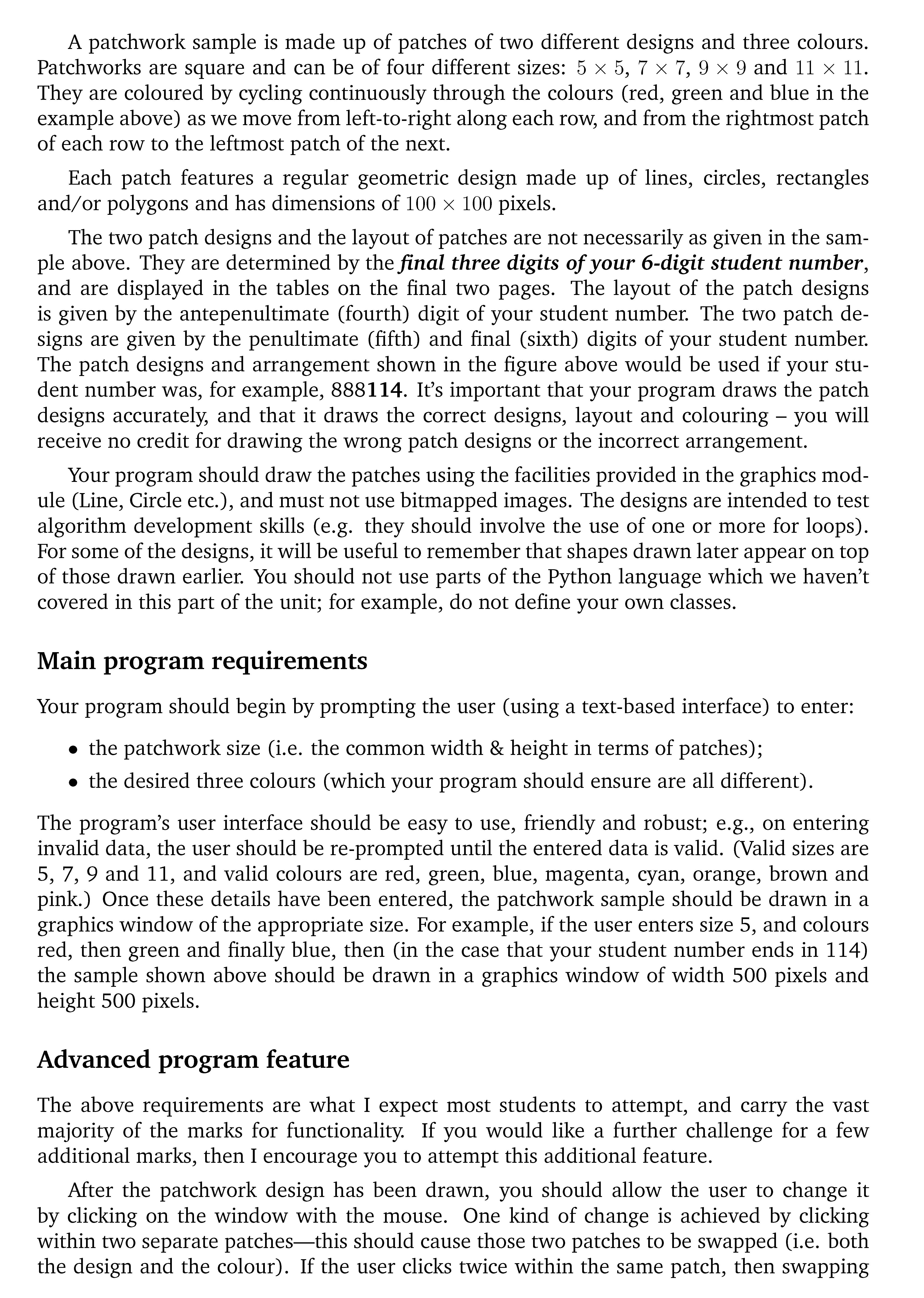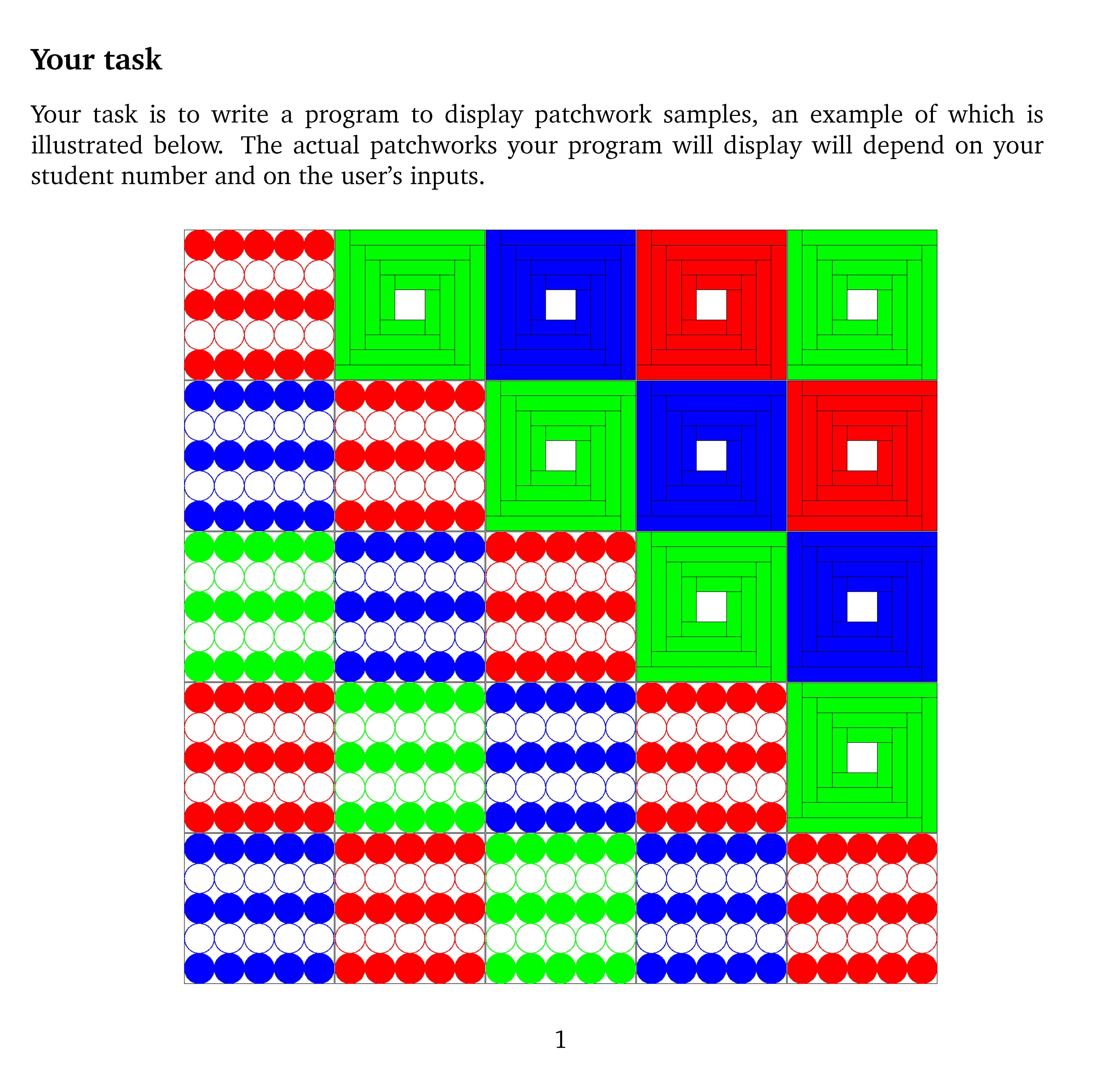 Your task Your task is to write a program to display patchwork sam...