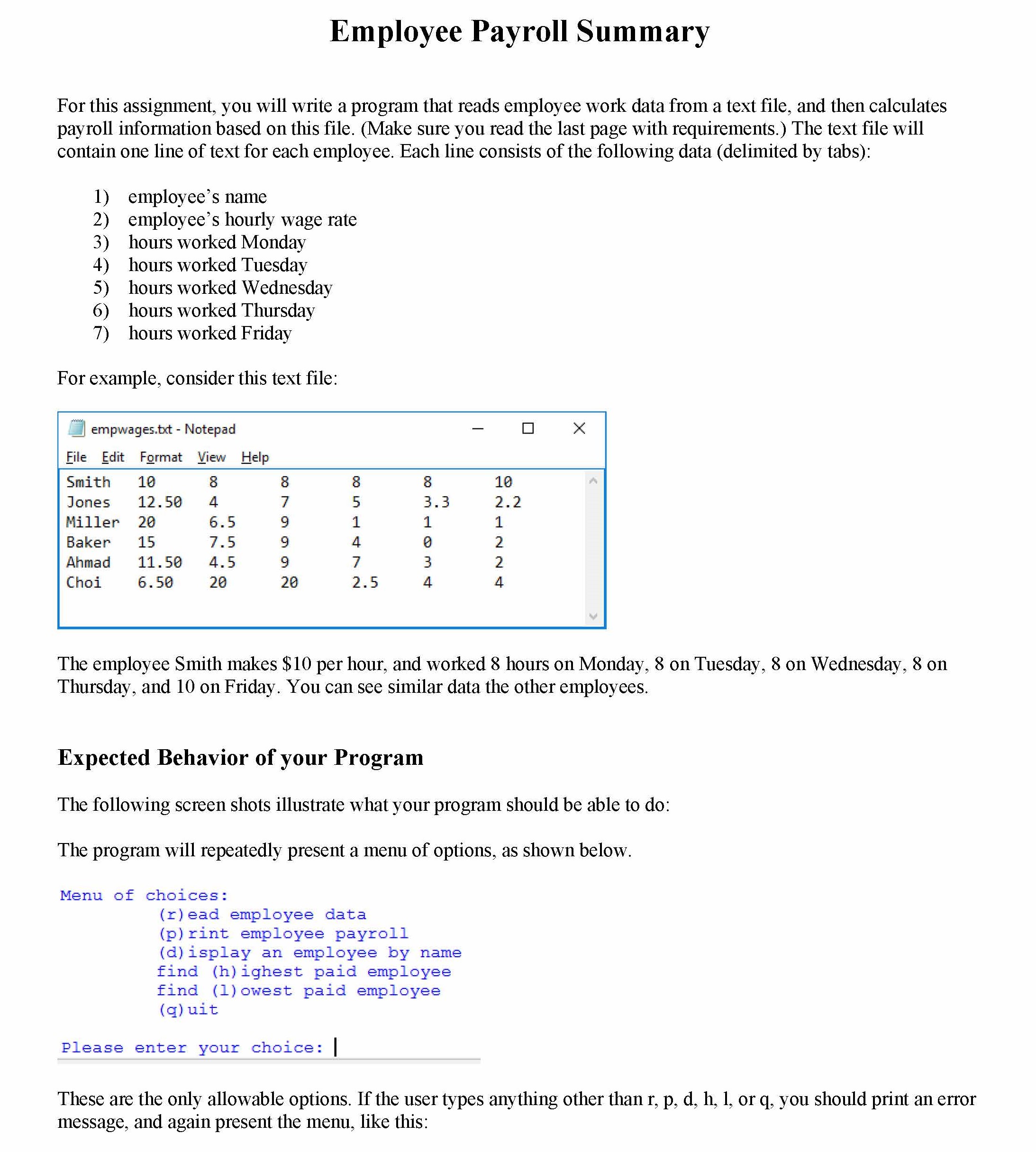 Employee Payroll Summary For this assignment, you will write a pro...