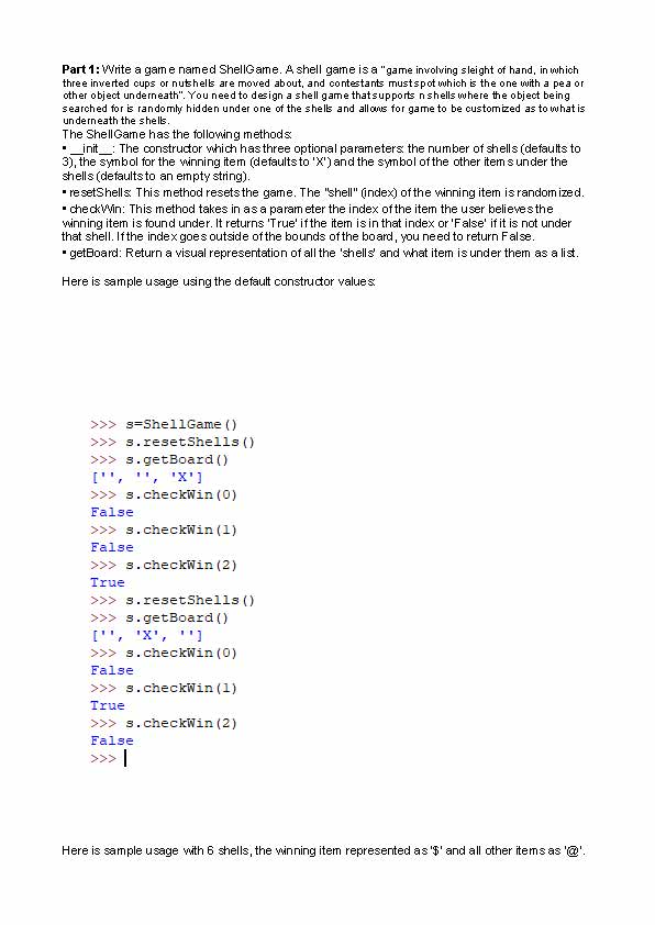 Part 1: Write a game named ShellGame. A shell game is a “game...