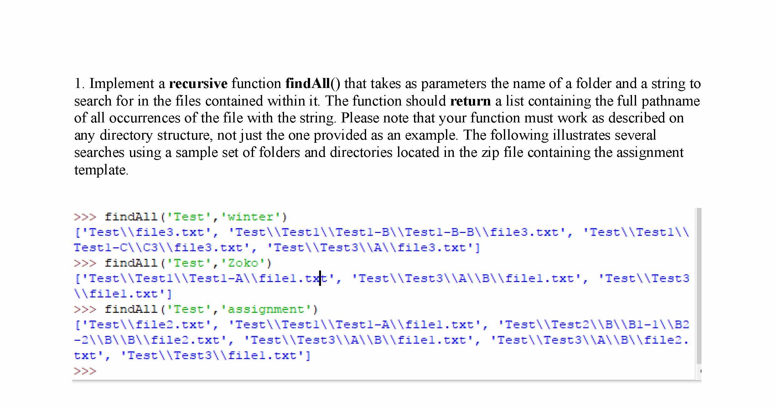 1. Implement a recursive function findAll() that takes as parameter...