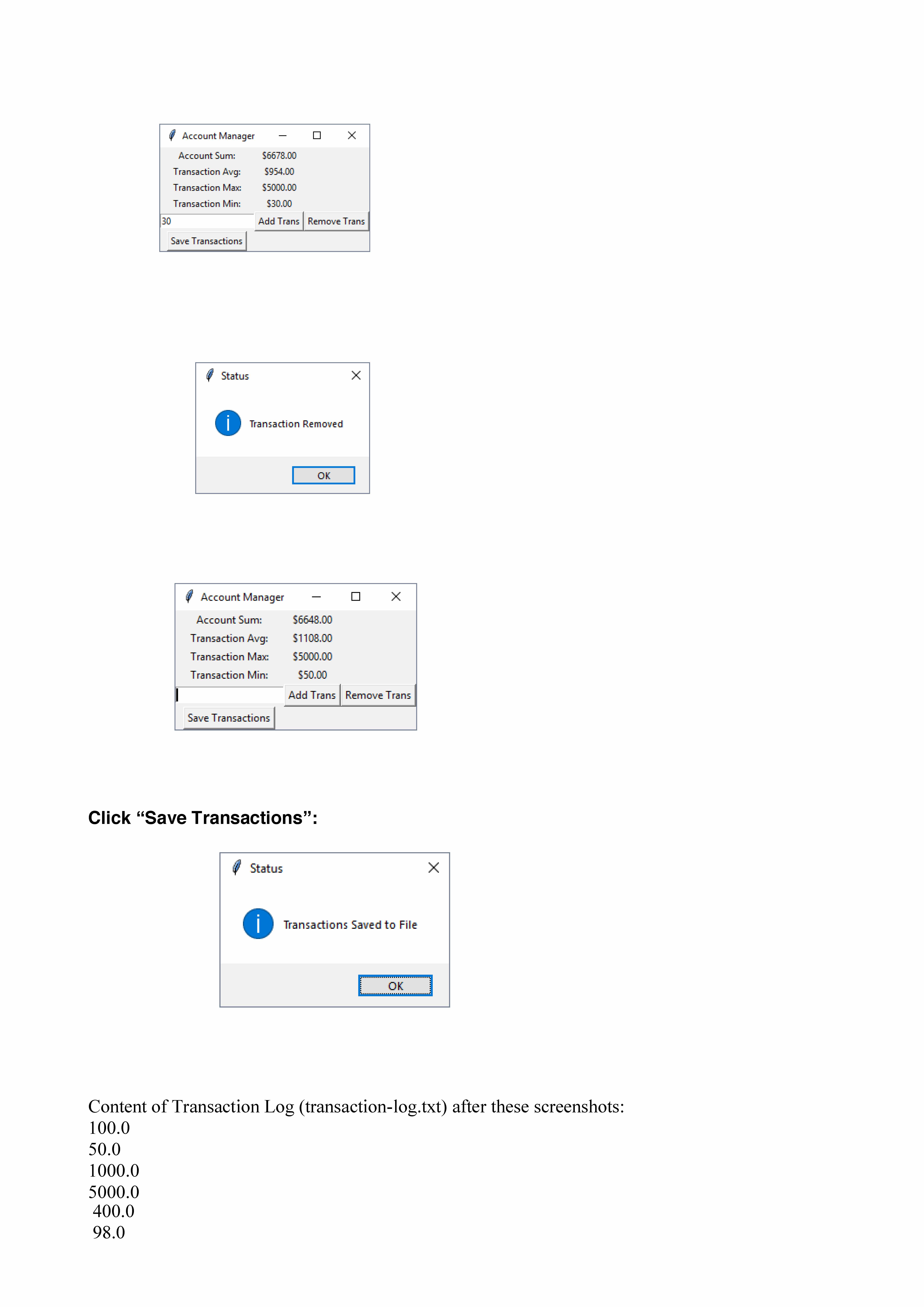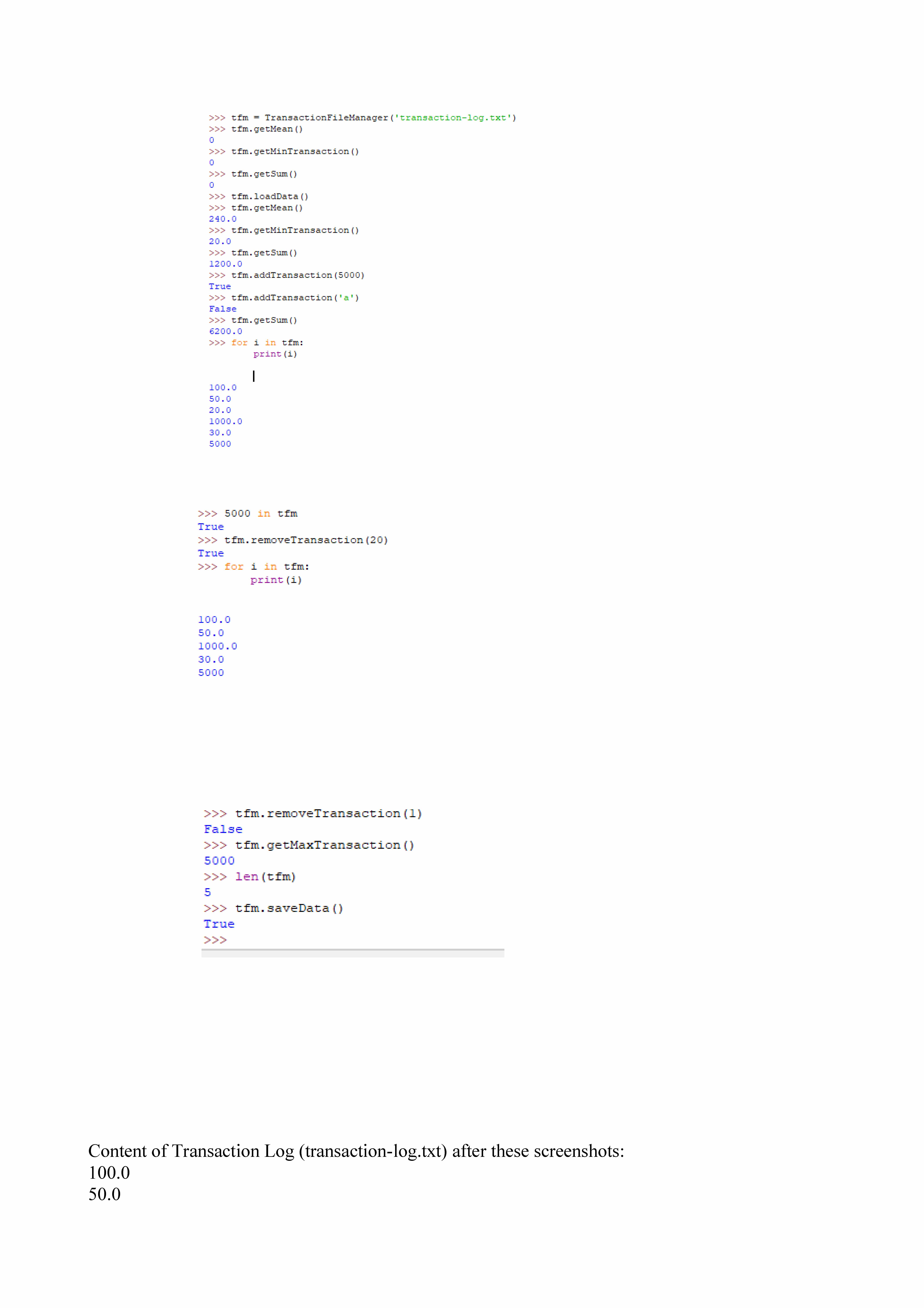 Problem 1 (50 points): Write a class named TransactionFileManager ...