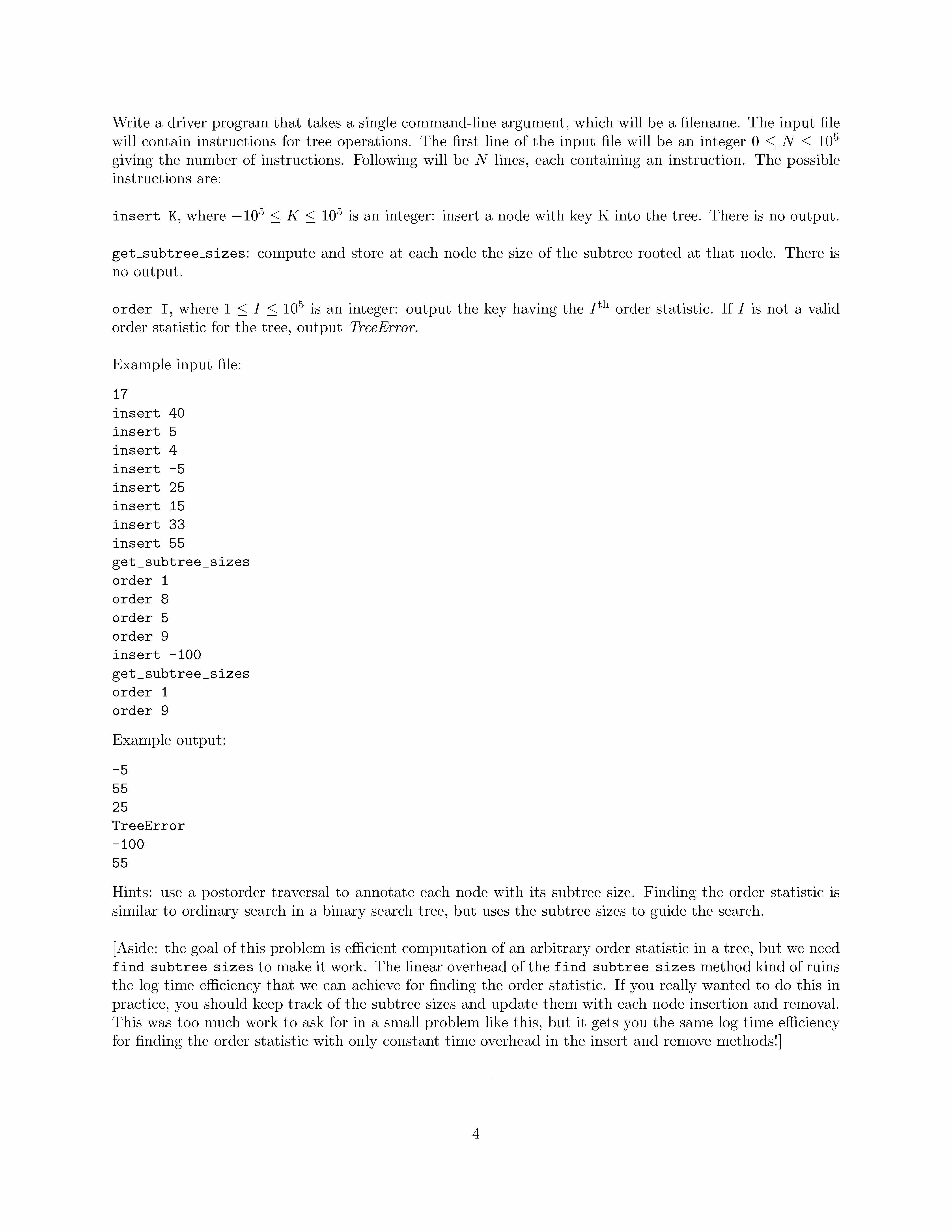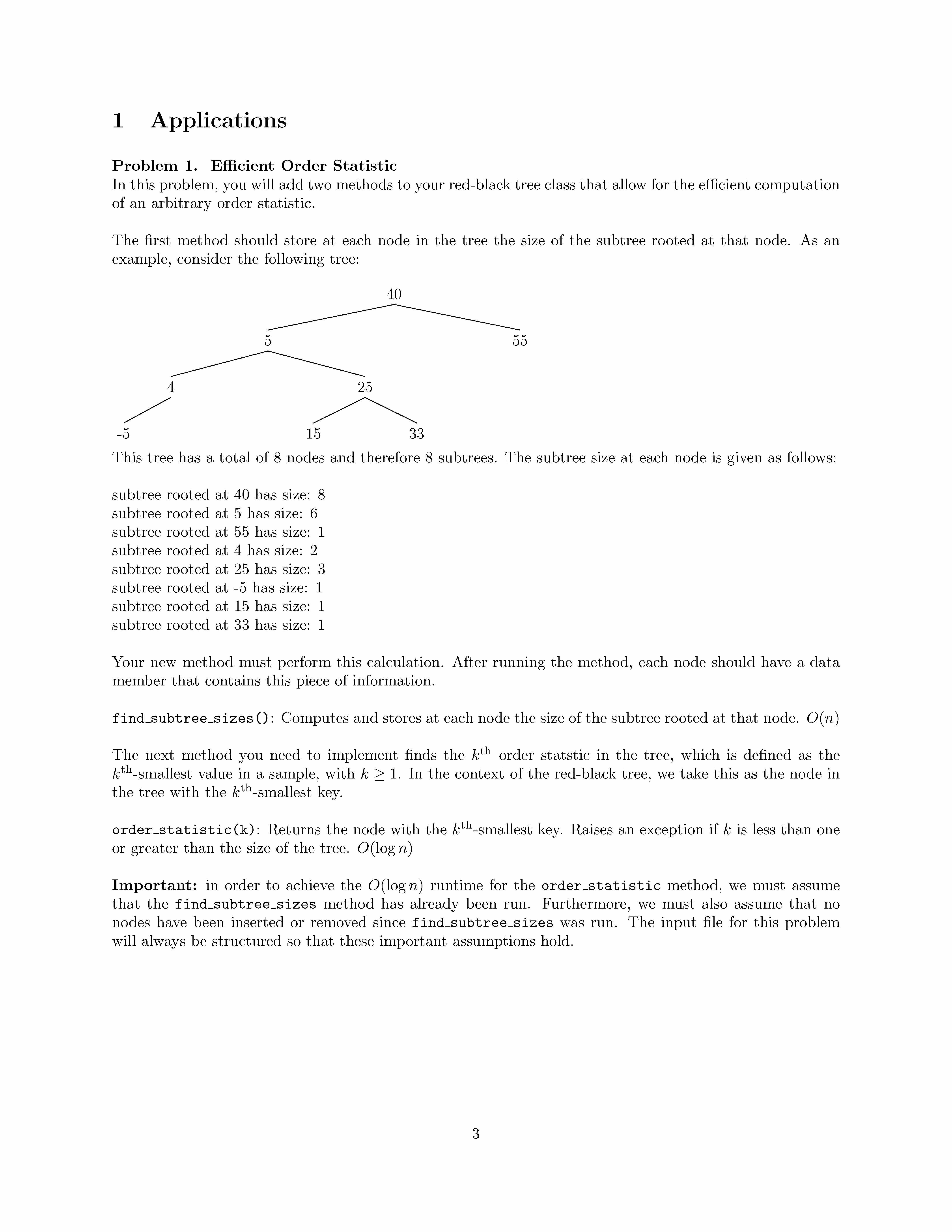 1 Applications Problem 1. Efficient Order Statistic In this probl...