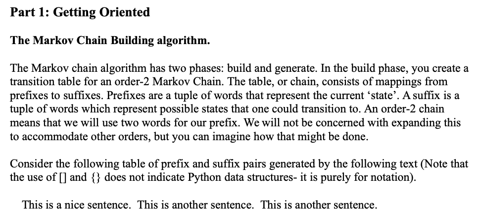 Part 1: Getting Oriented The Markov Chain Building algorithm. The...