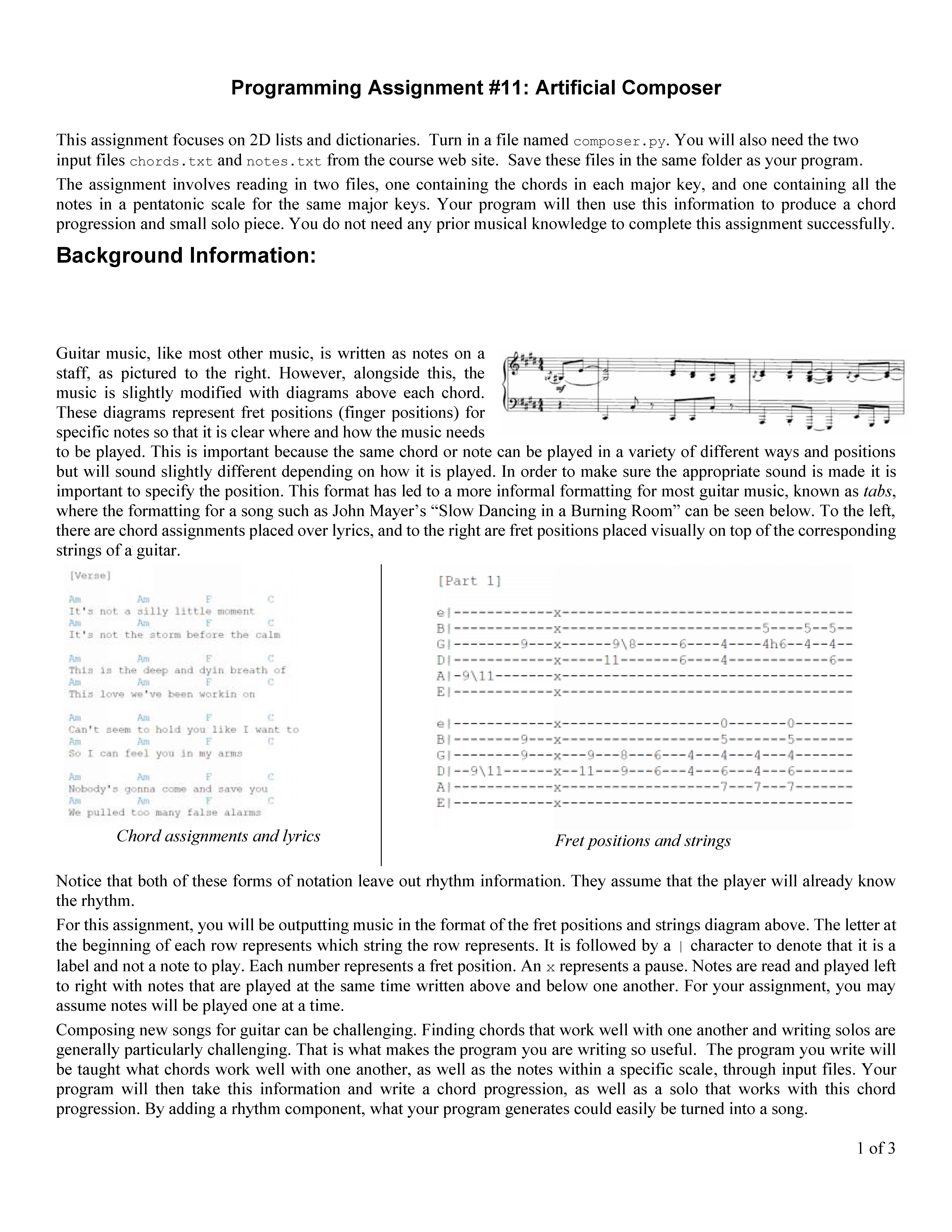 Programming Assignment #11: Artificial Composer This assignment fo...