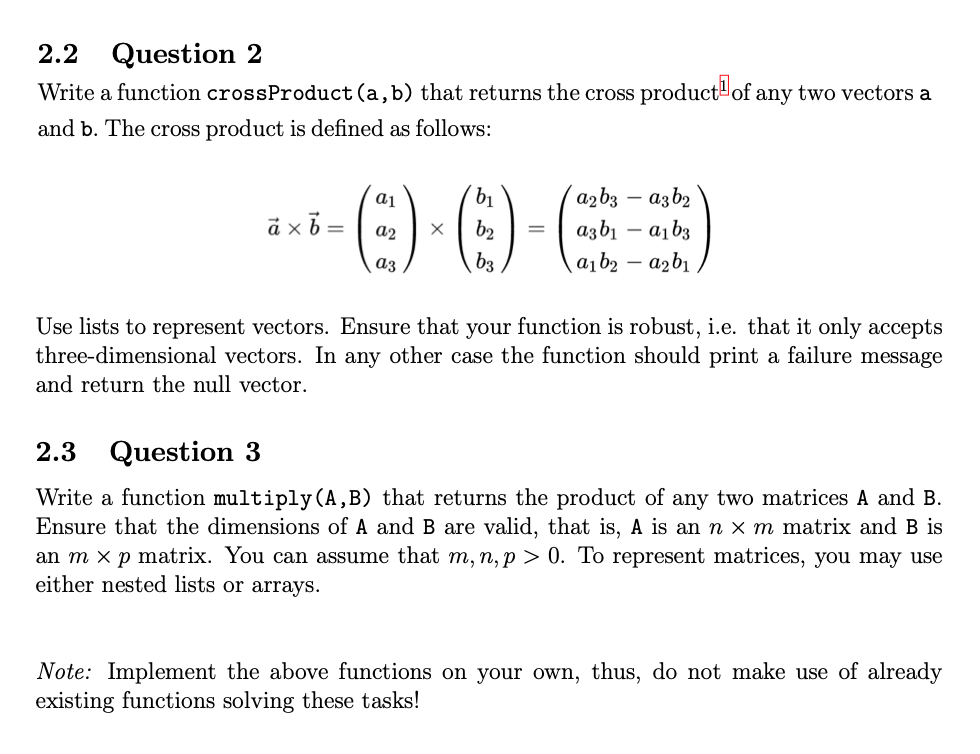 2.2 Question 2 Write a function crossProduct(a,b) that returns the...