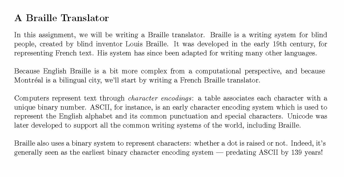 A Braille Translator In this assignment, we will be writing a Brai...