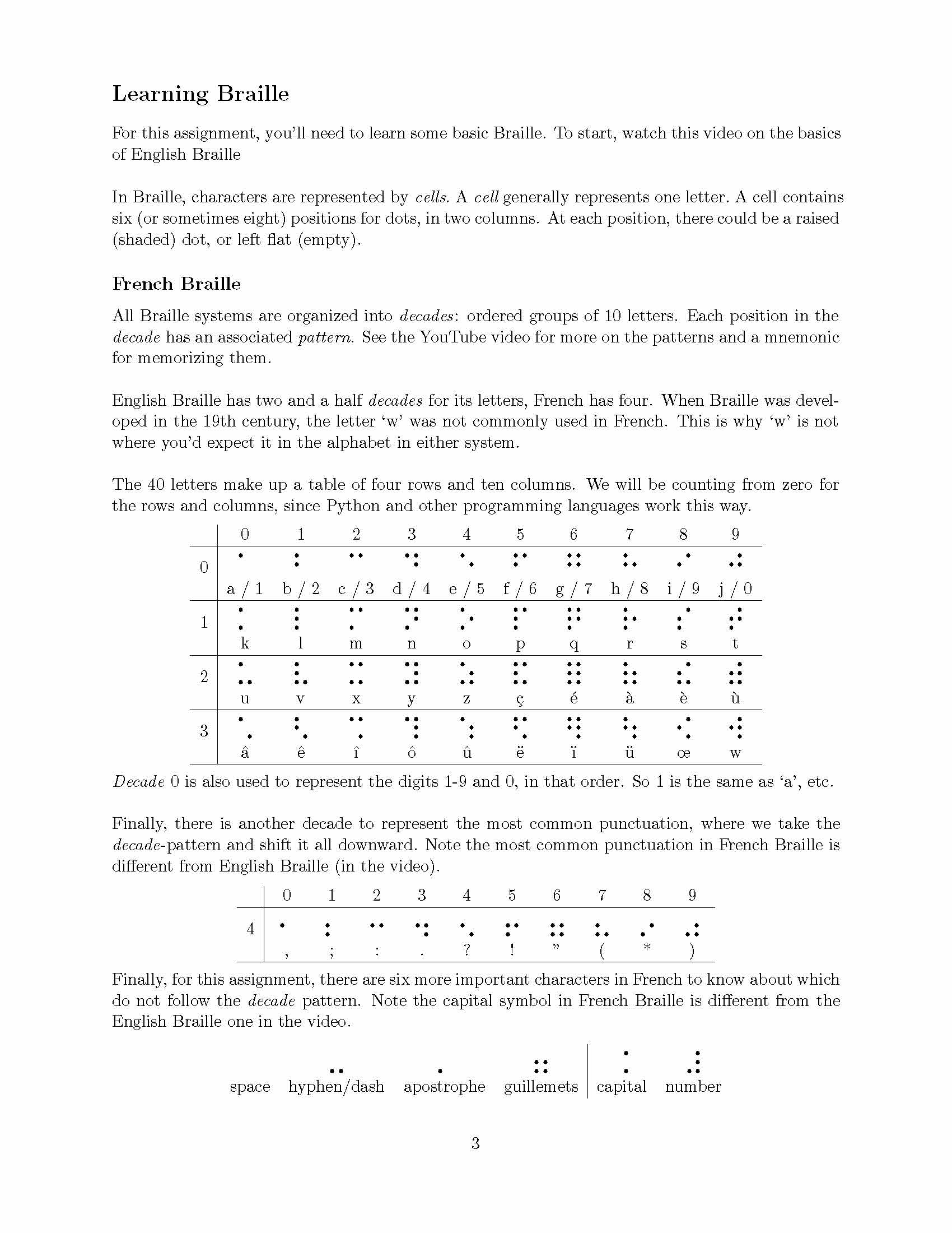 Learning Braille For this assignment, you’ll need to learn ...