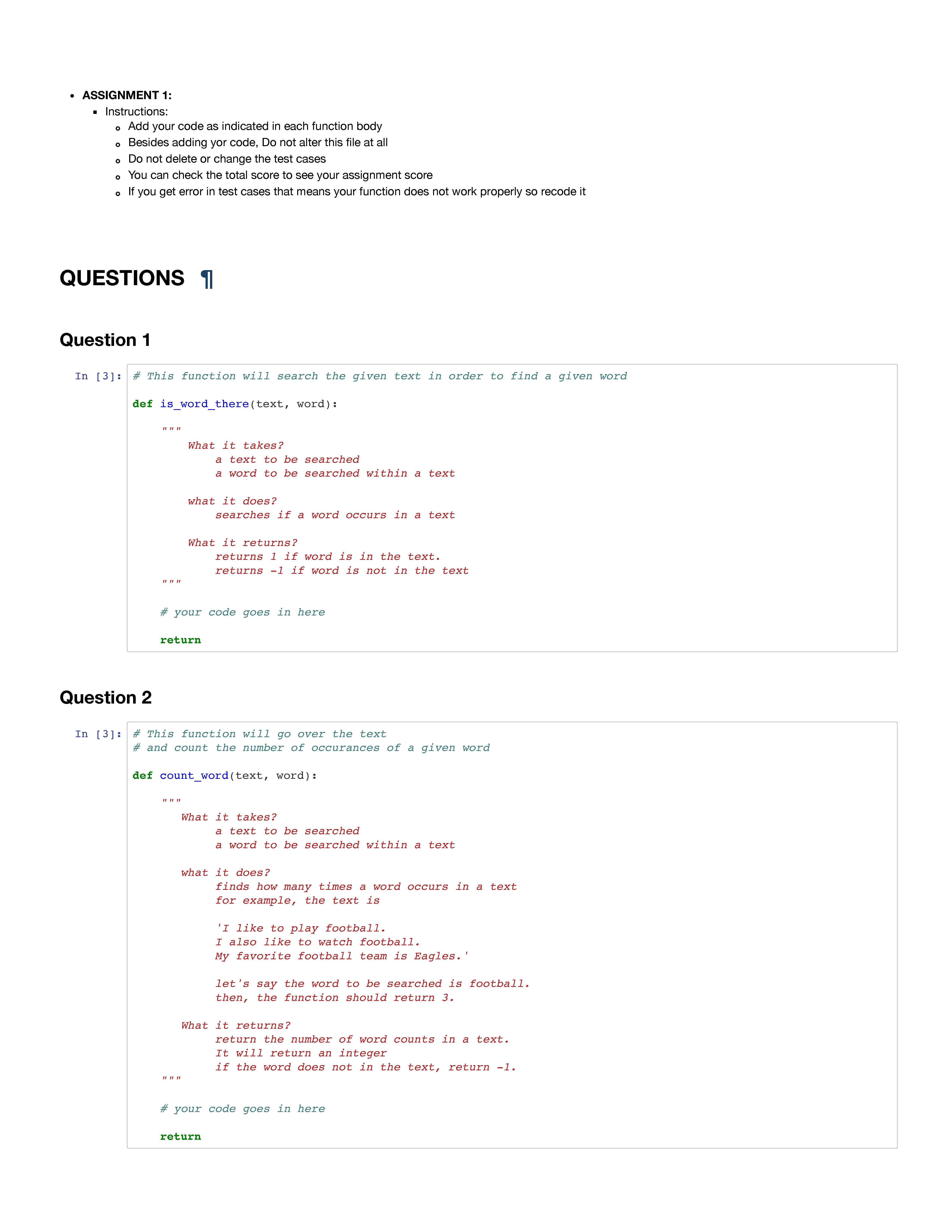 ASSIGNMENT 1: Instructions: Add your code as indicated in each fu...
