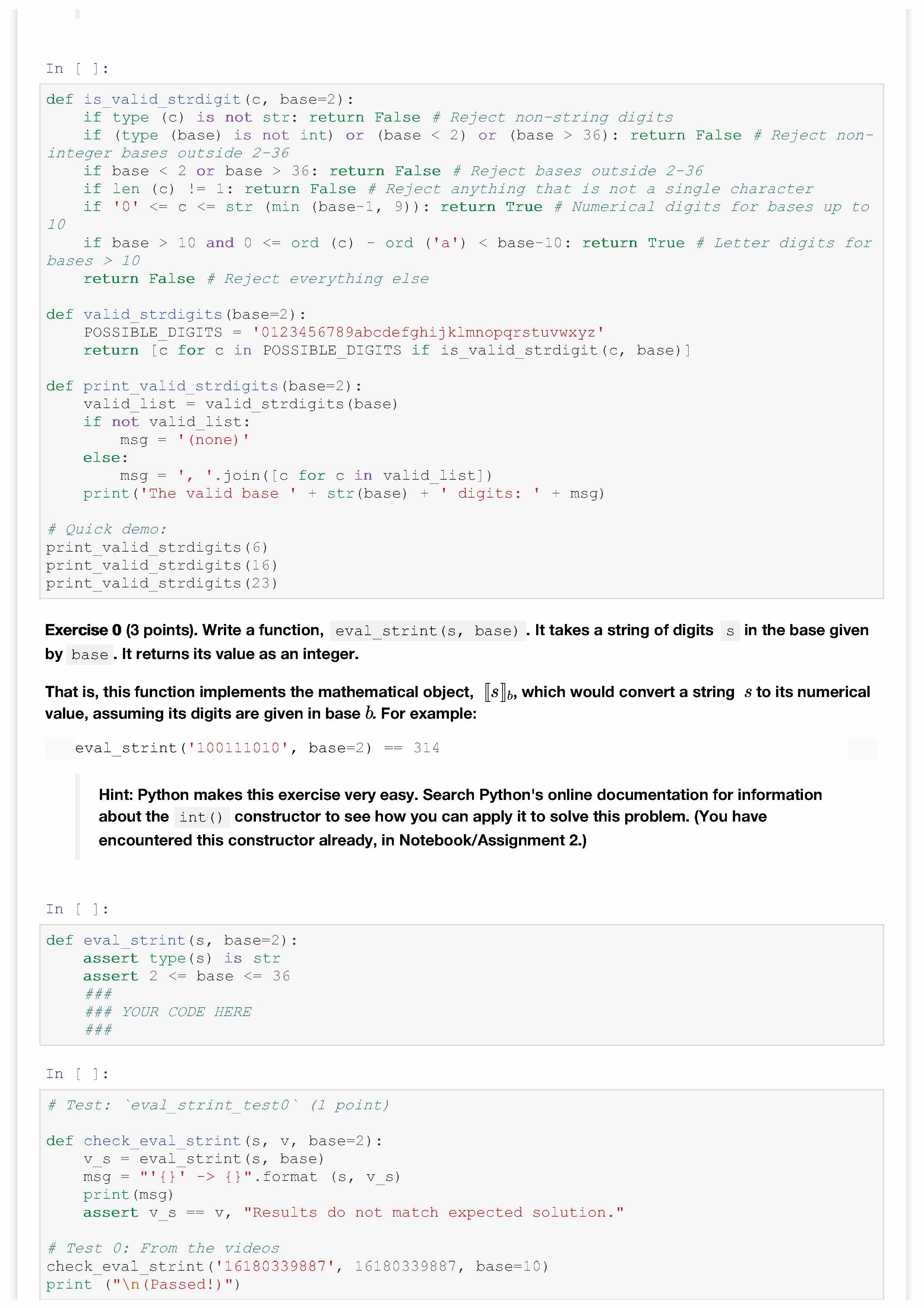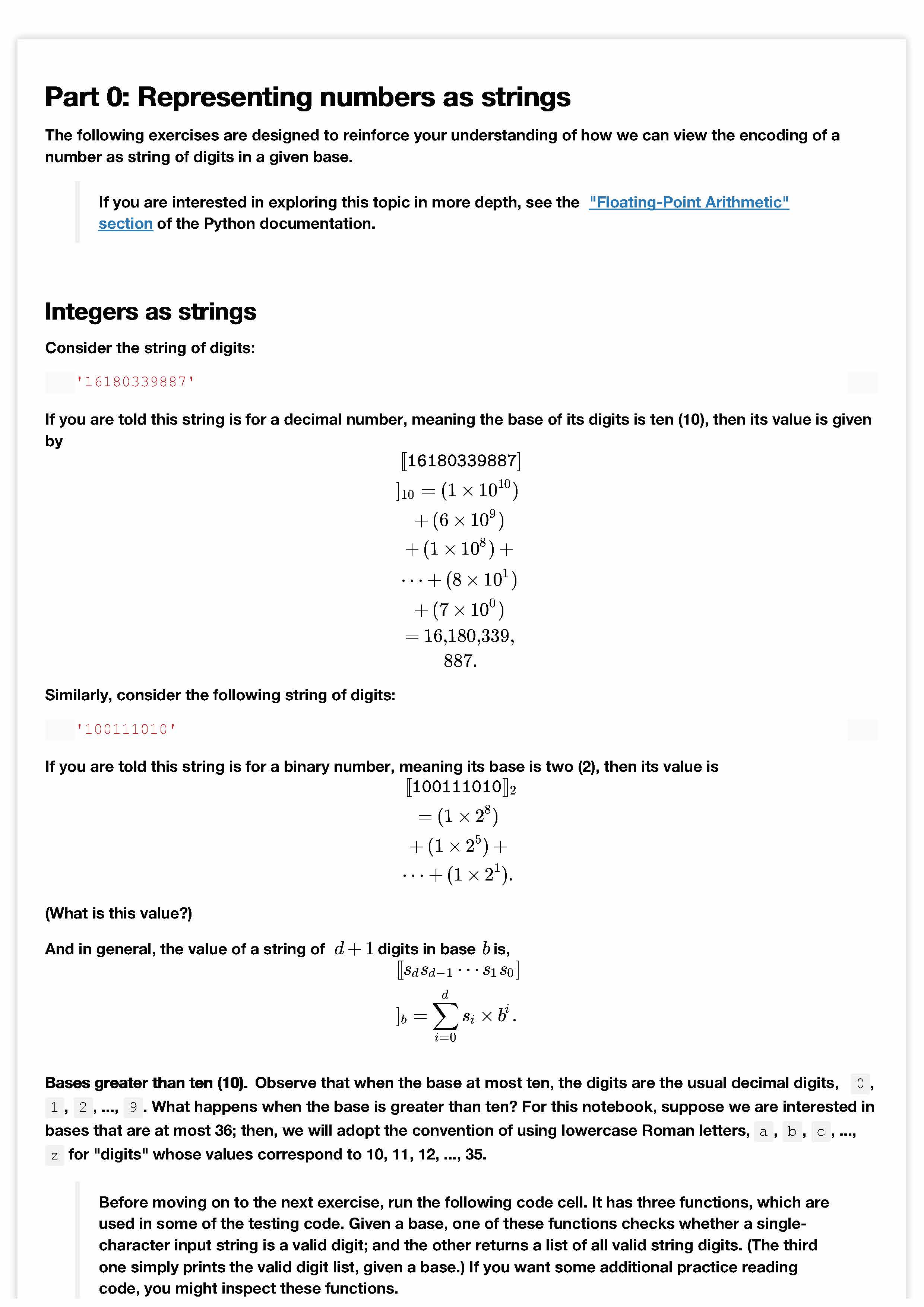 Part 0: Representing numbers as strings The following exercises ar...