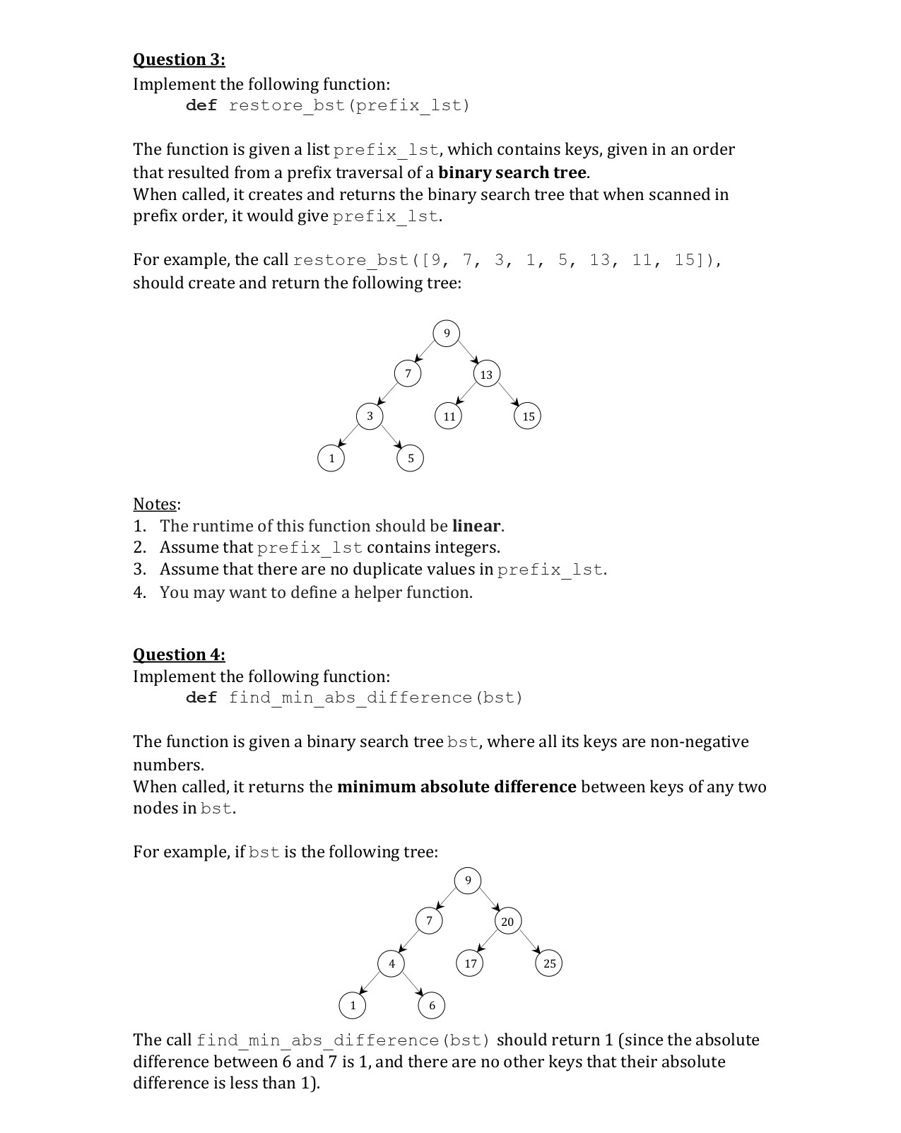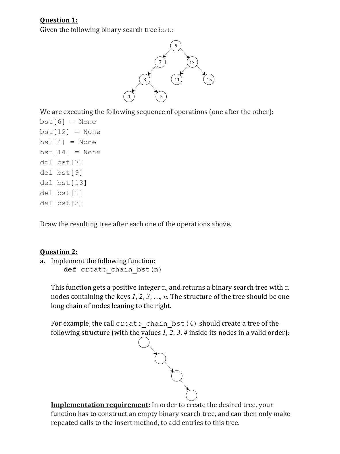 Question 1: Given the following binary search tree bst: 9 7 13 ...