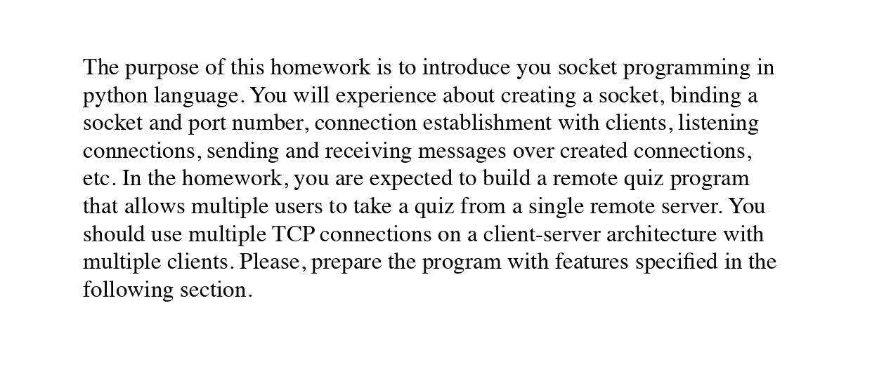 The purpose of this homework is to introduce you socket programming...