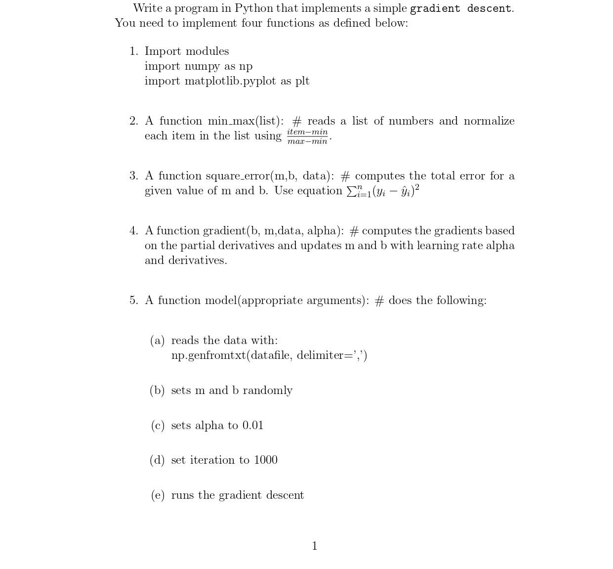 Write a program in Python that implements a simple gradient descent...