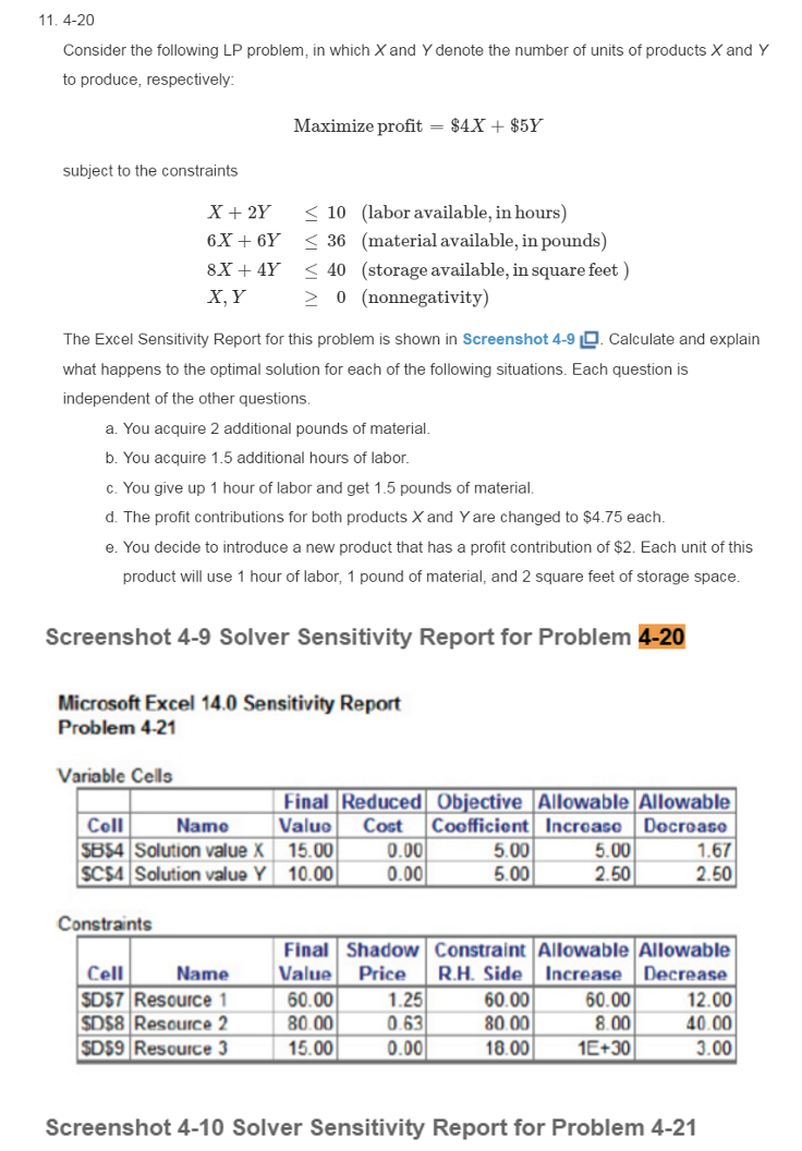 11. 4-20 Consider the following LP problem, in which X and Y denot...