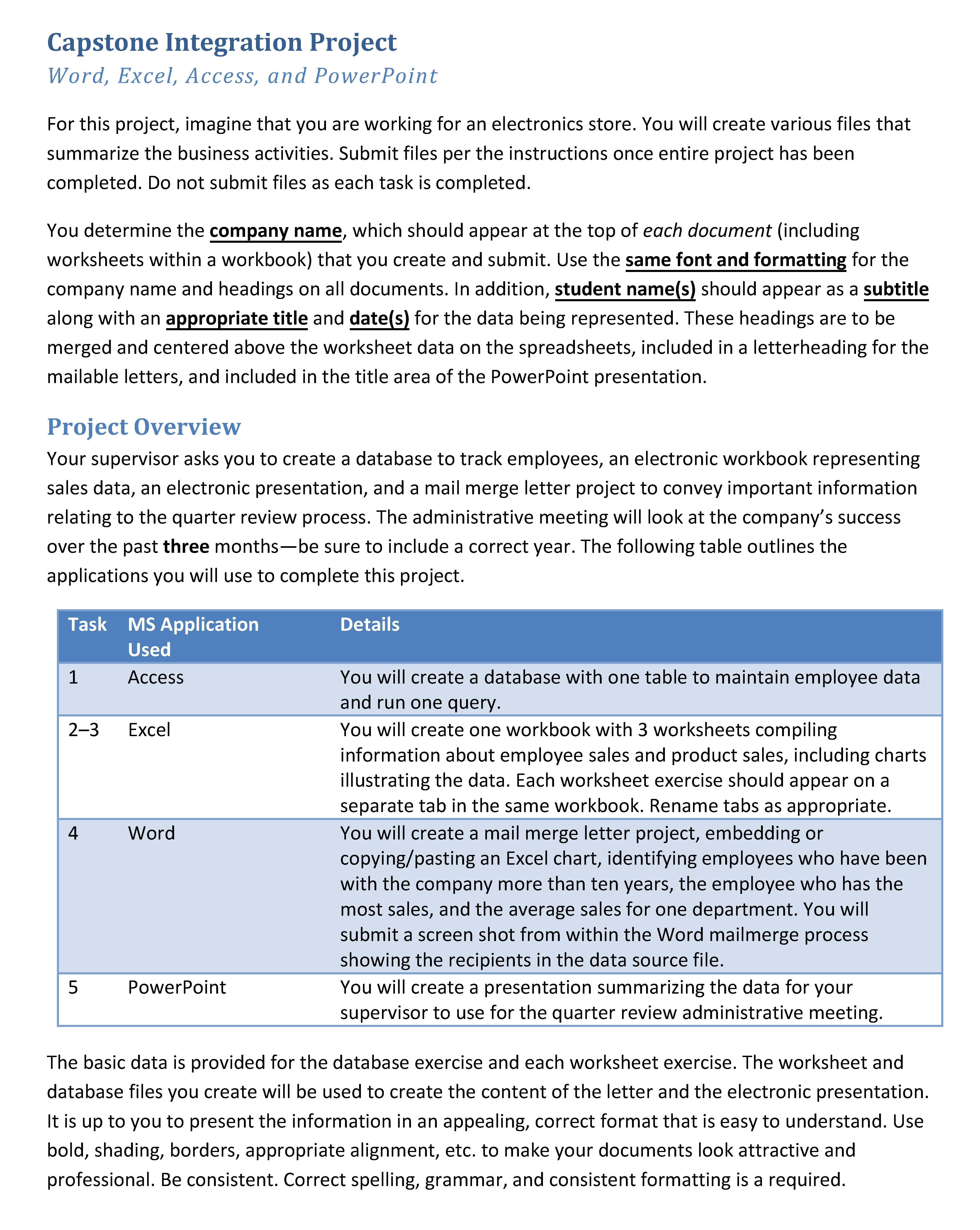 Capstone Integration Project Word, Excel, Access, and PowerPoint ...