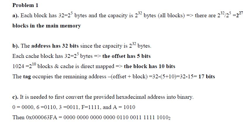 1. Suppose a computer using direct mapped cache has 2°2 byte of ...