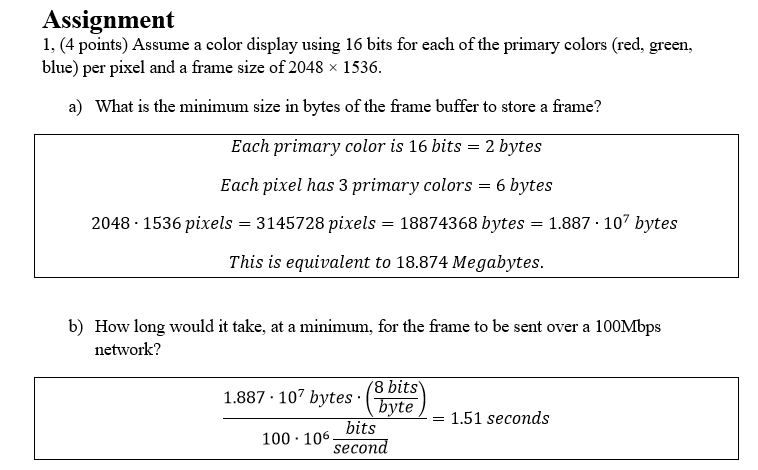 Assignment 1, (4 points) Assume a color display using 16 bits for...