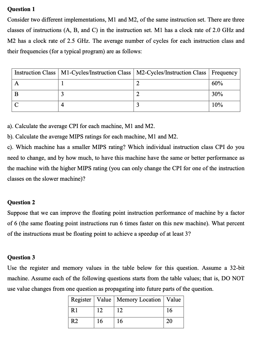 Question 1 Consider two different implementations, M1 and M2, of t...