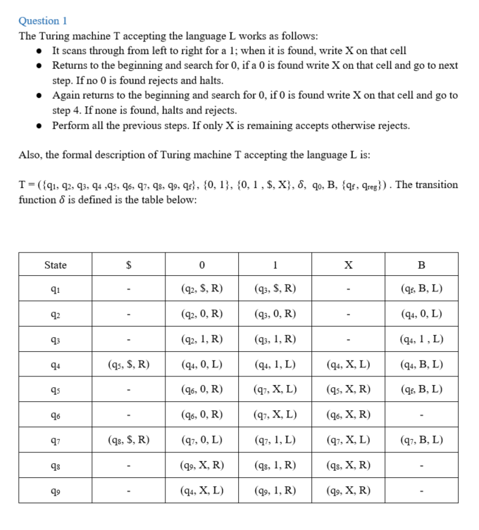 Problem 1. Describe an one-tape, deterministic Turing machine that...