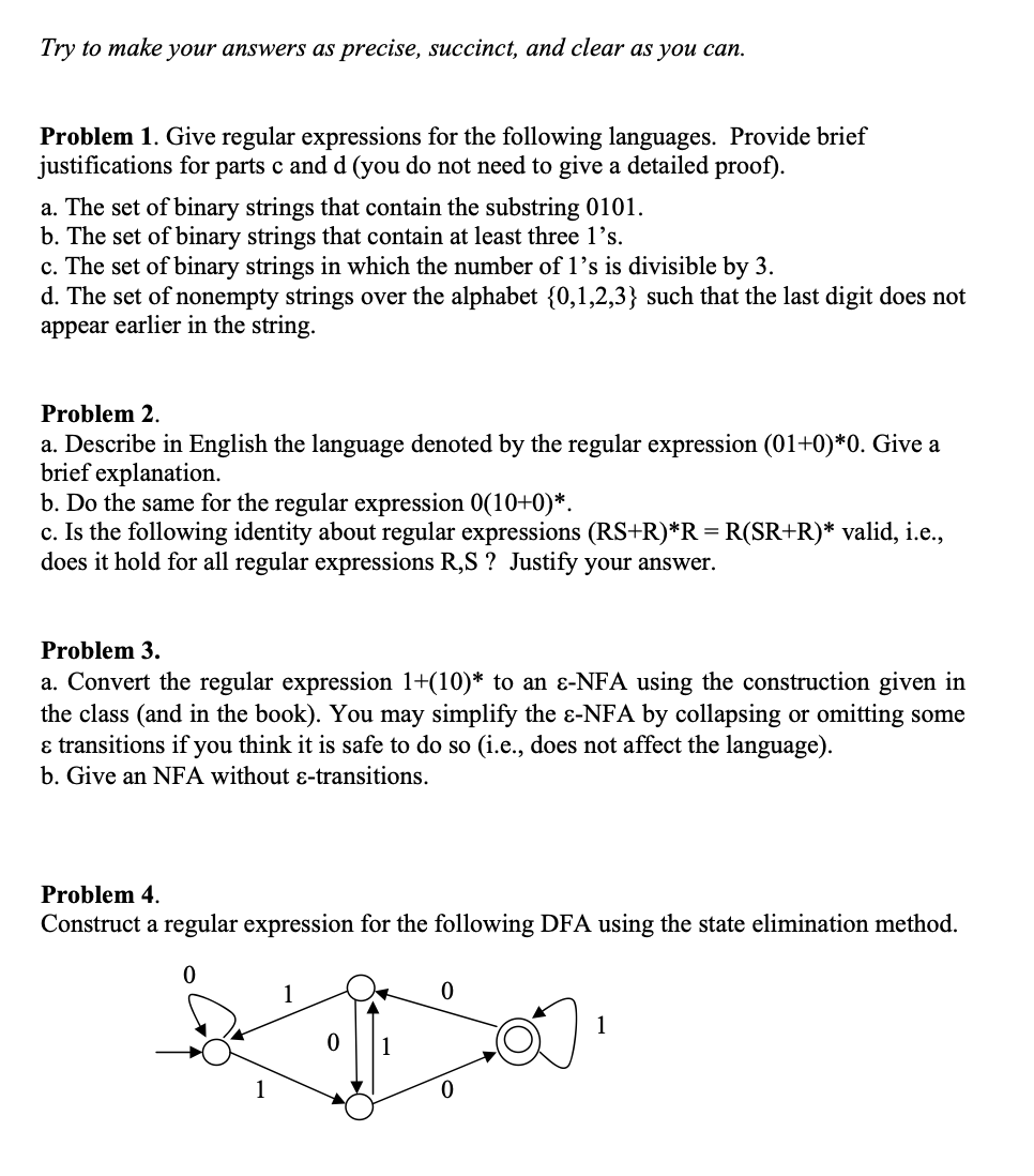 Try to make your answers as precise, succinct, and clear as you can...