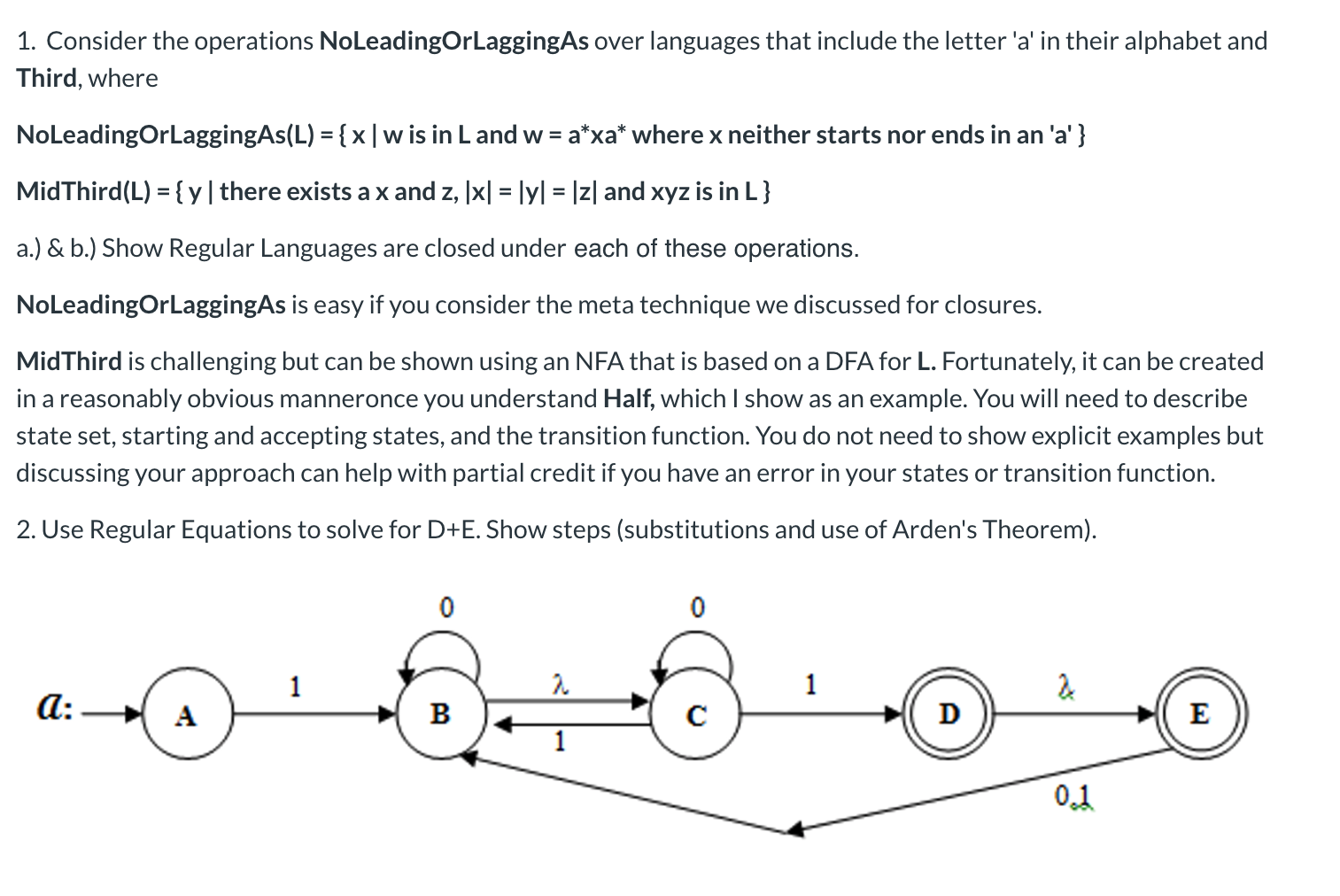 1. Consider the operations NoLeadingOrLaggingAs over languages that...
