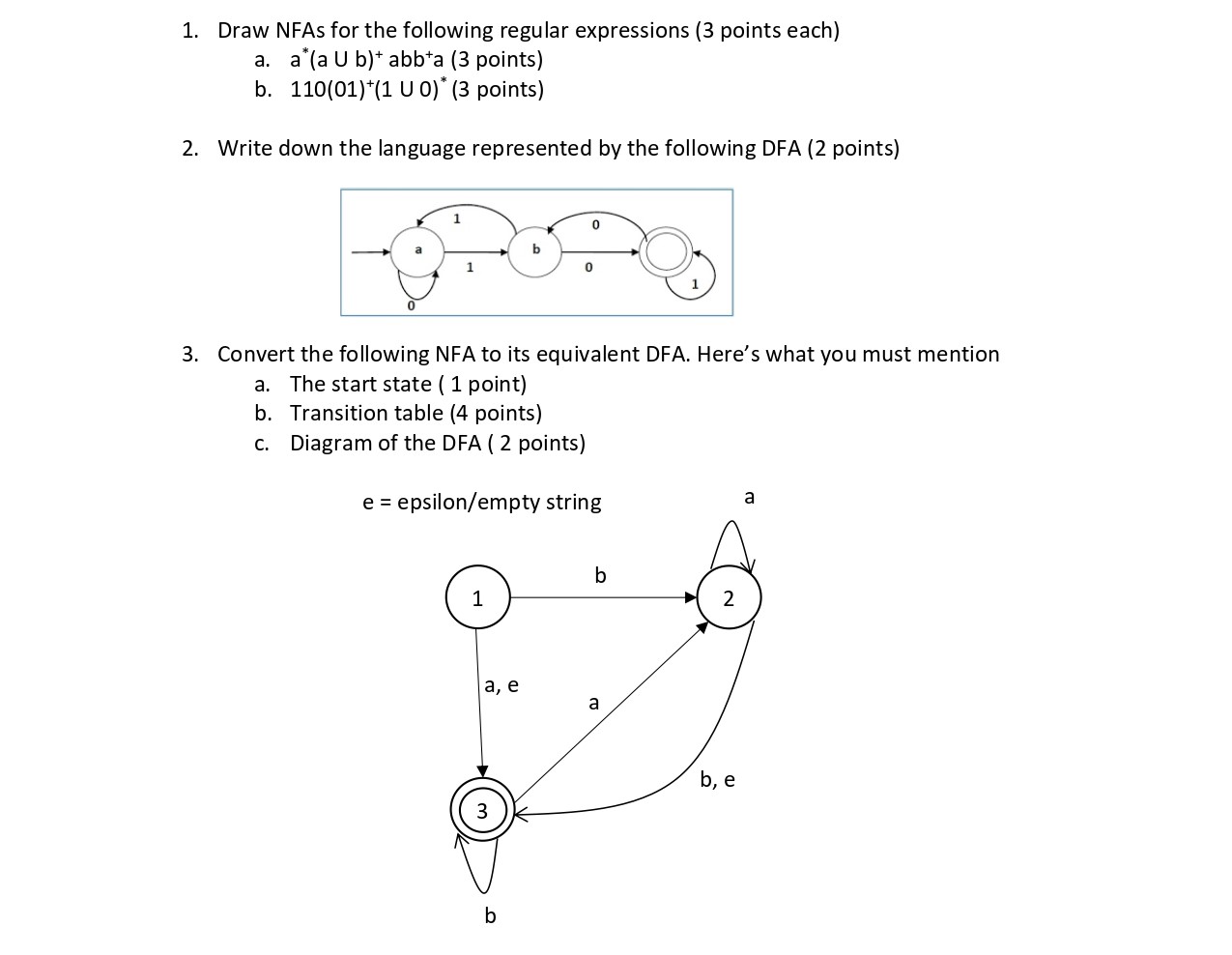 1. Draw NFAs for the following regular expressions (3 points each)...