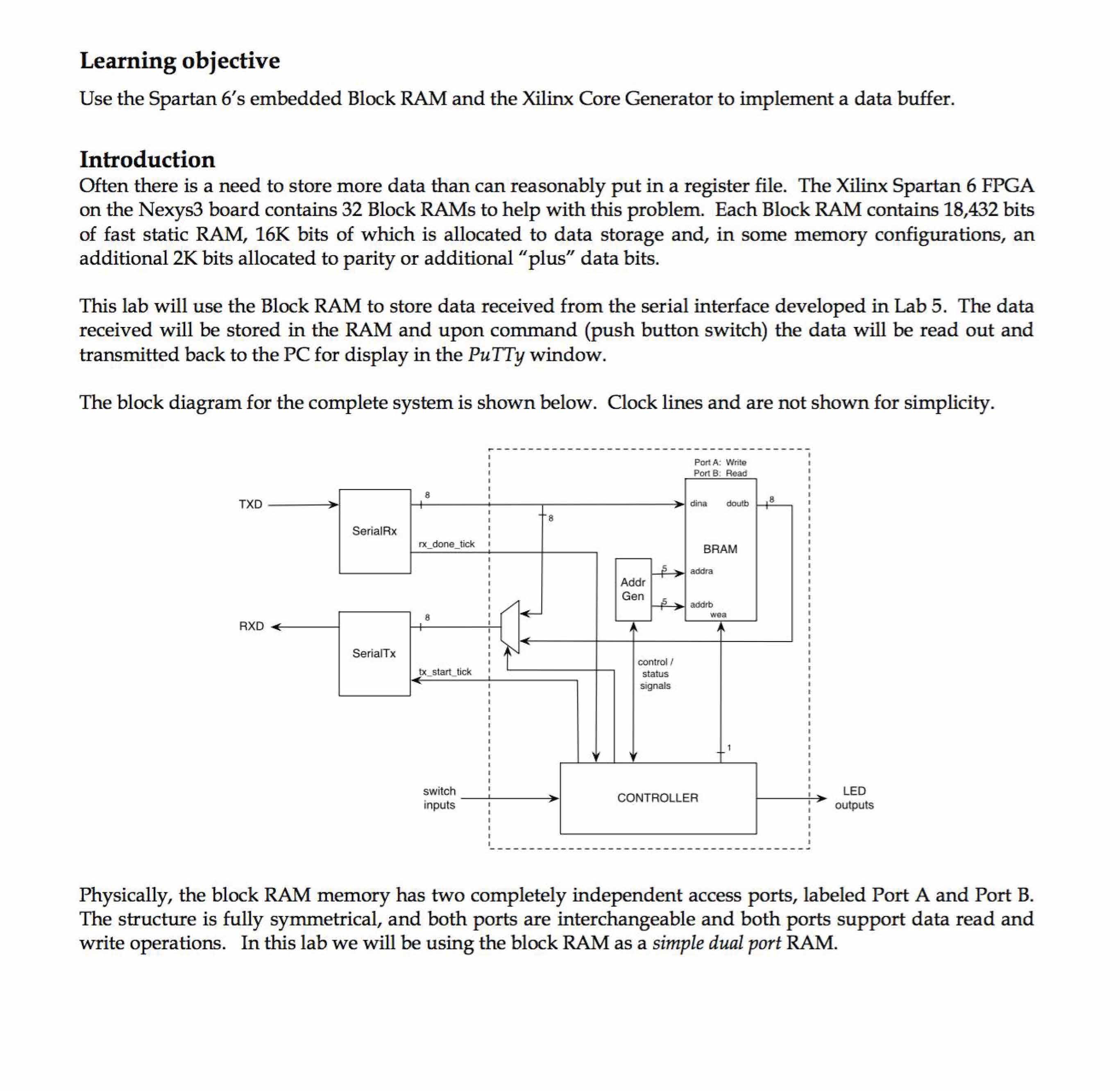 Learning objective Use the Spartan 6's embedded Block RAM and the ...