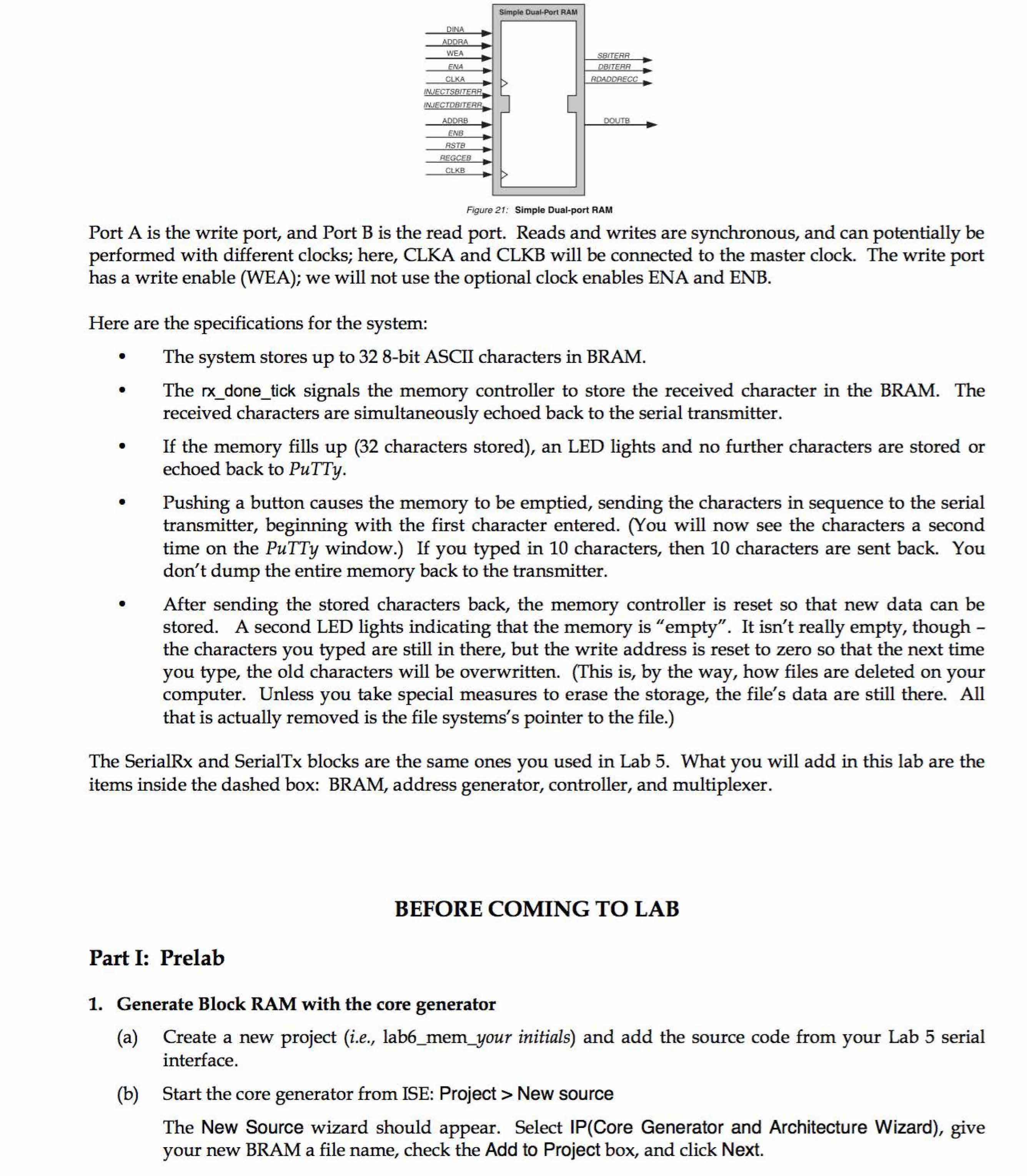 Learning objective Use the Spartan 6's embedded Block RAM and the...