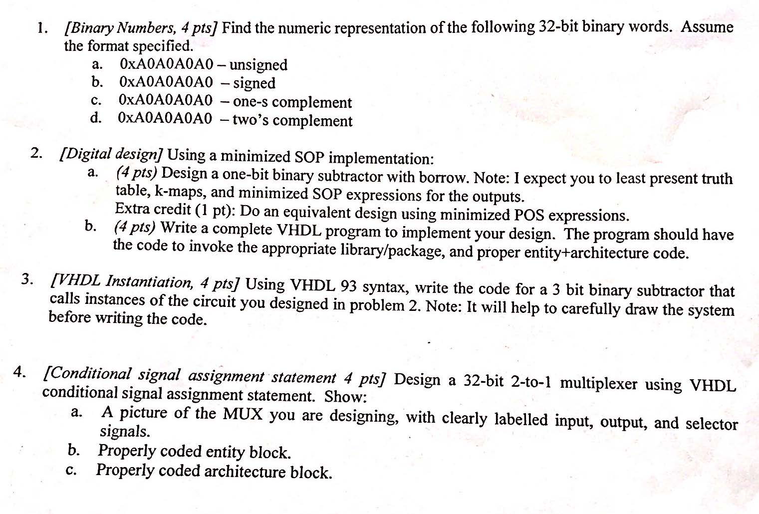 1. [Binary Numbers, 4 pts] Find the numeric representation of the f...