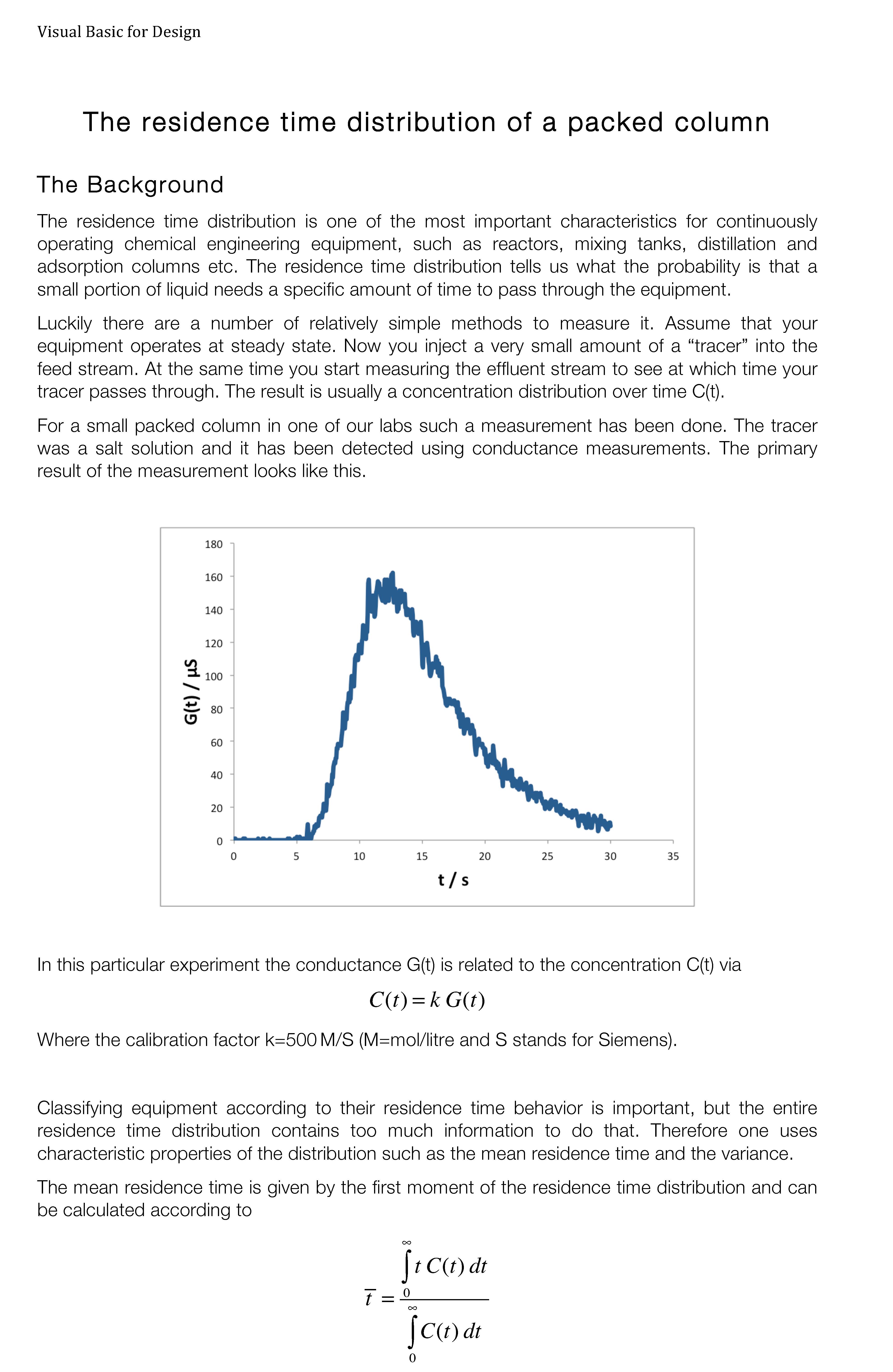 Visual Basic Design The residence time distribution of a packed co...