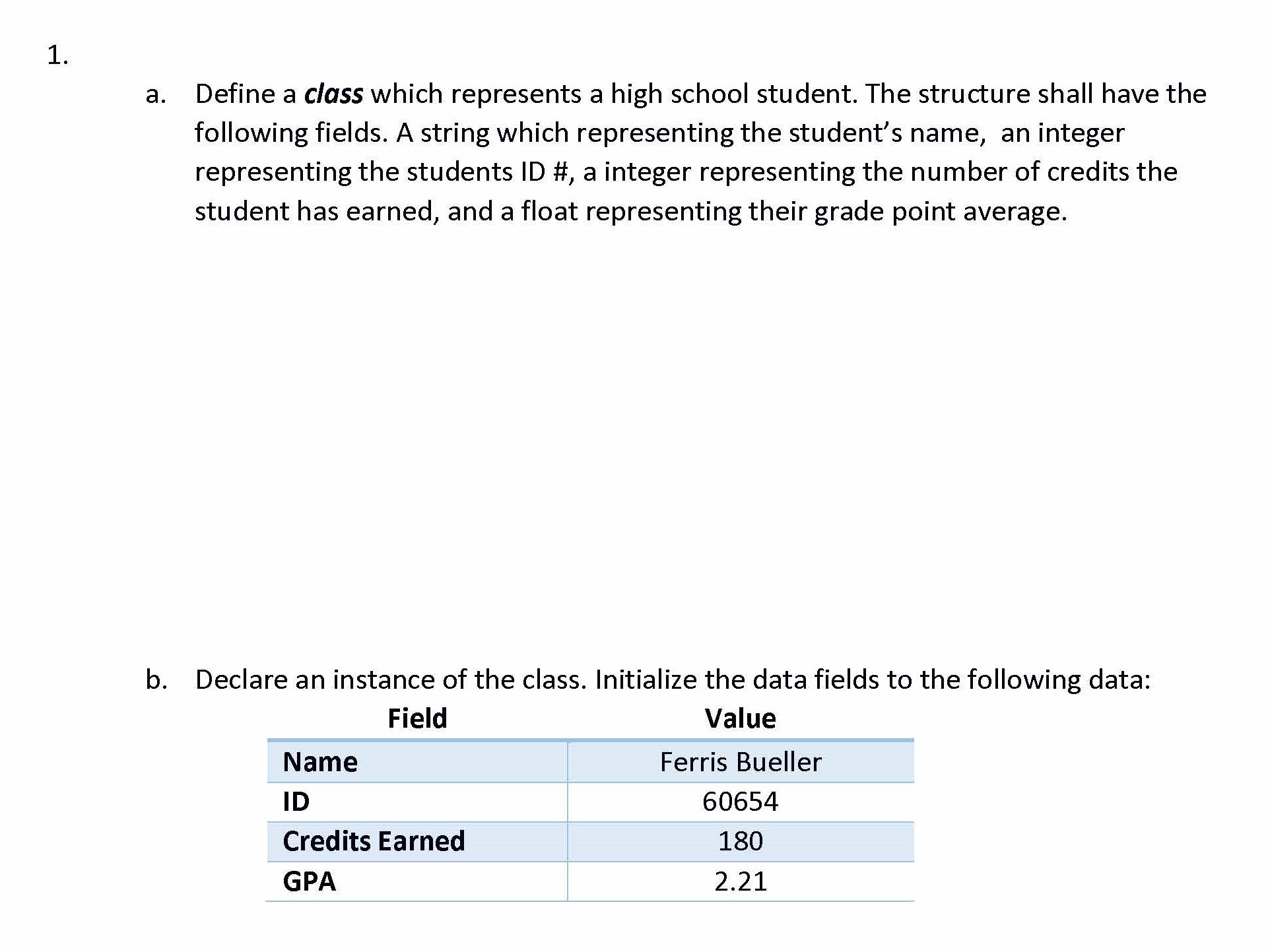 1. a. Define a class which represents a high school student. The s...