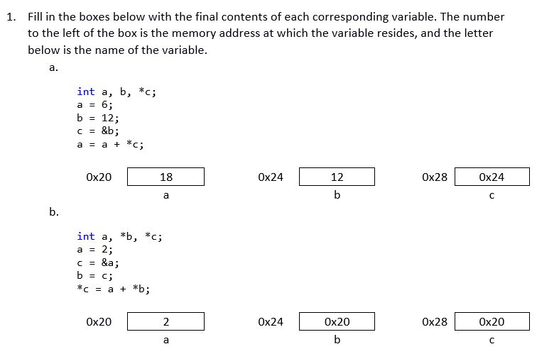 1. Fill in the boxes below with the final contents of each correspo...