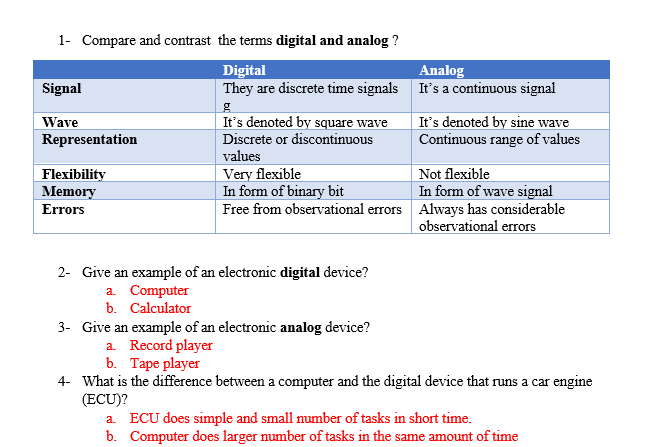 1 - Compare and contrast the terms digital and analog ? 2 - Give...