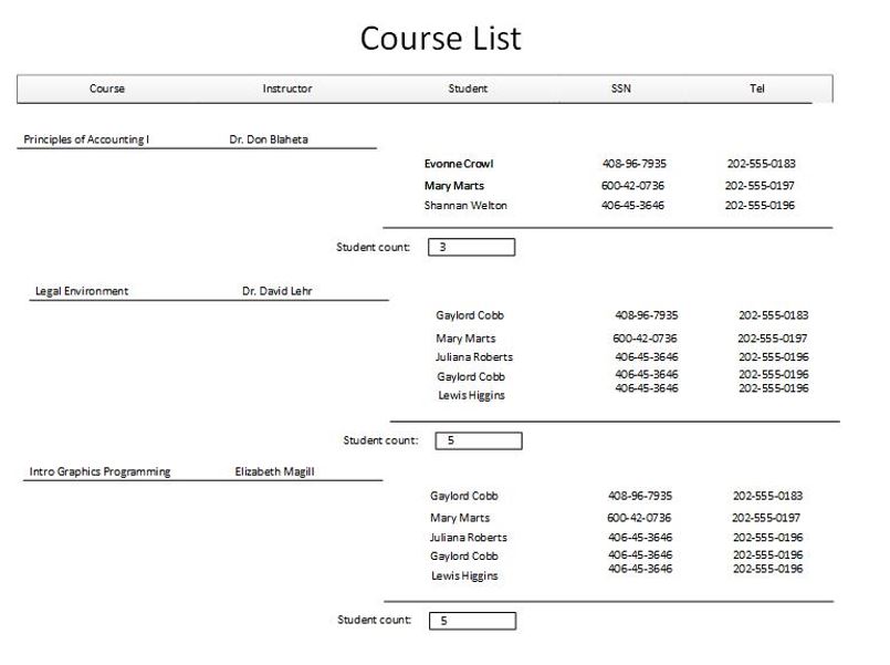 1. Create a detail report that will display all SCR courses in alph...