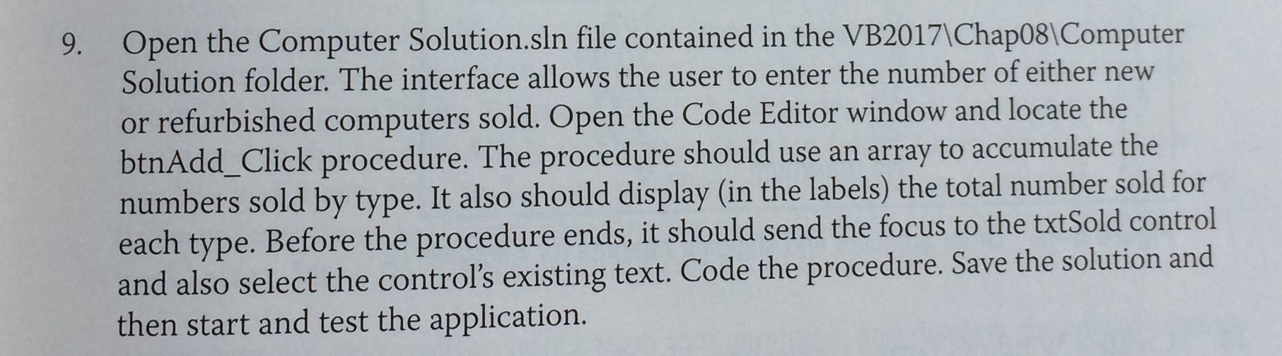 9. Open the Computer Solution.sln file contained in the VB2017\Cha...