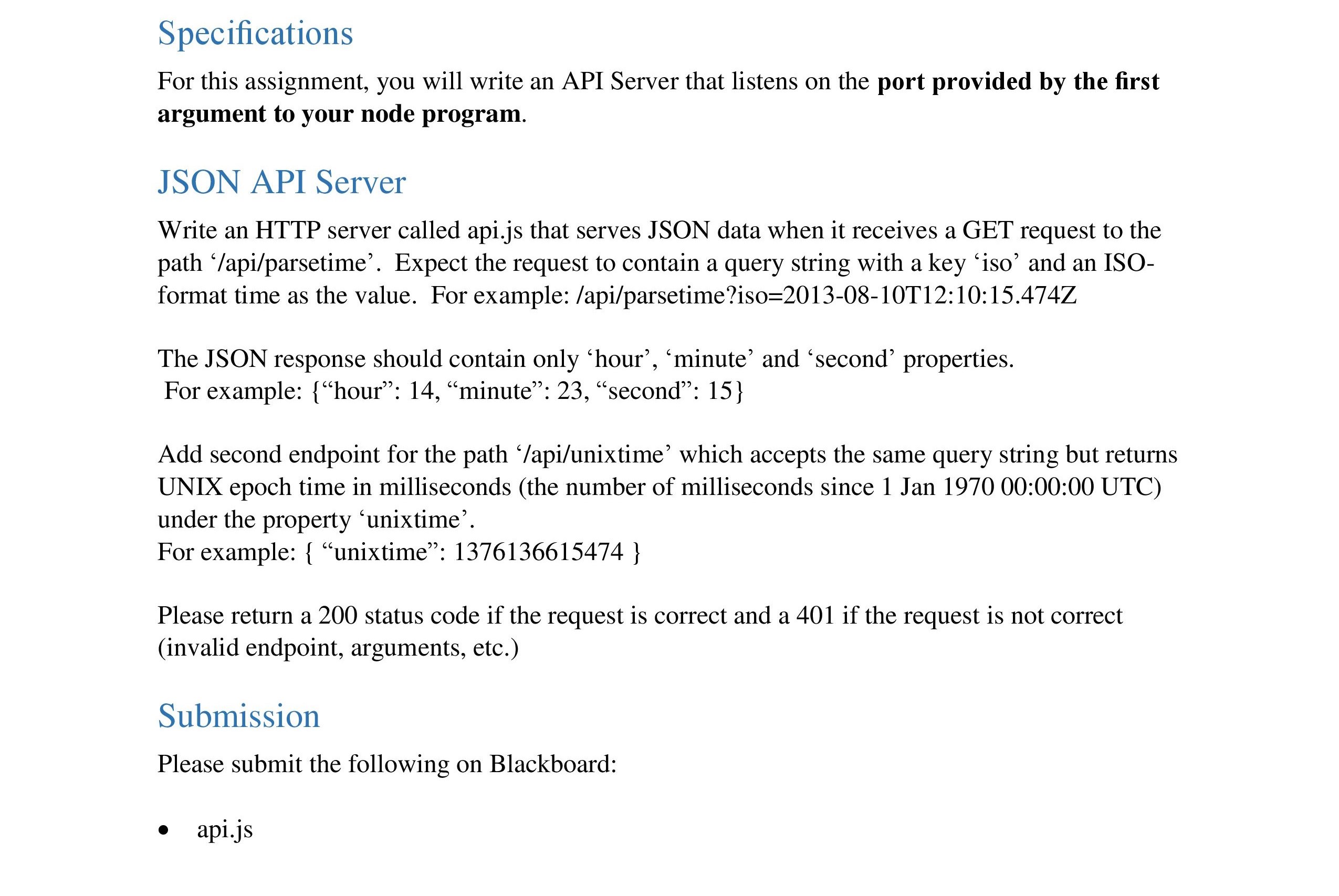 Specifications For this assignment, you will write an API Server t...