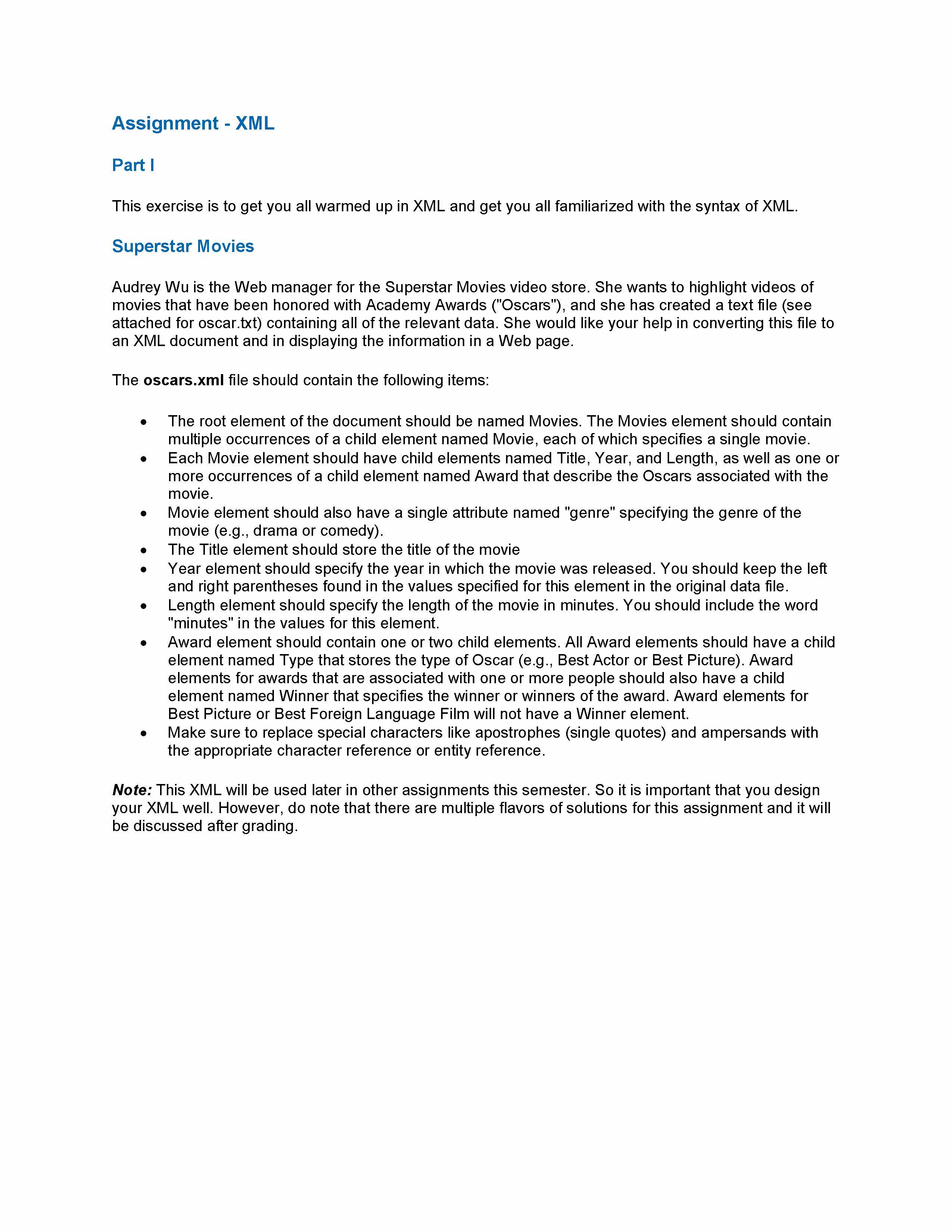 Assignment XML Part This exercise is to get you all warmed up in ...