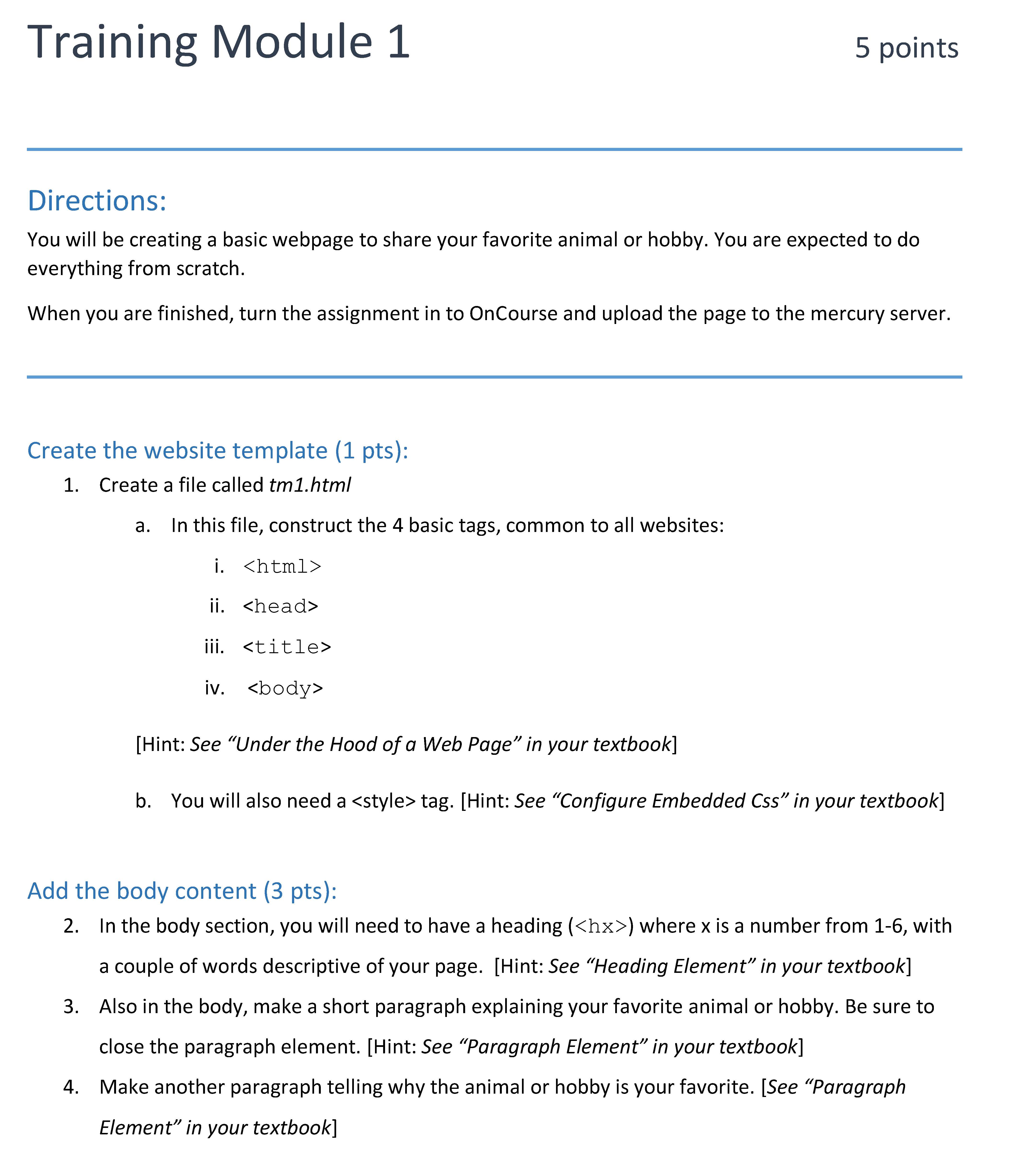Training Module 1 5 points Directions: You will be creating a bas...