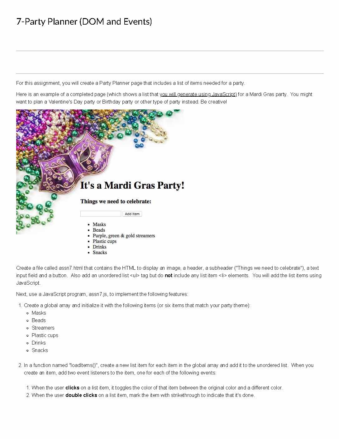 7-Party Planner (DOM and Events) For this assignment, you will cre...
