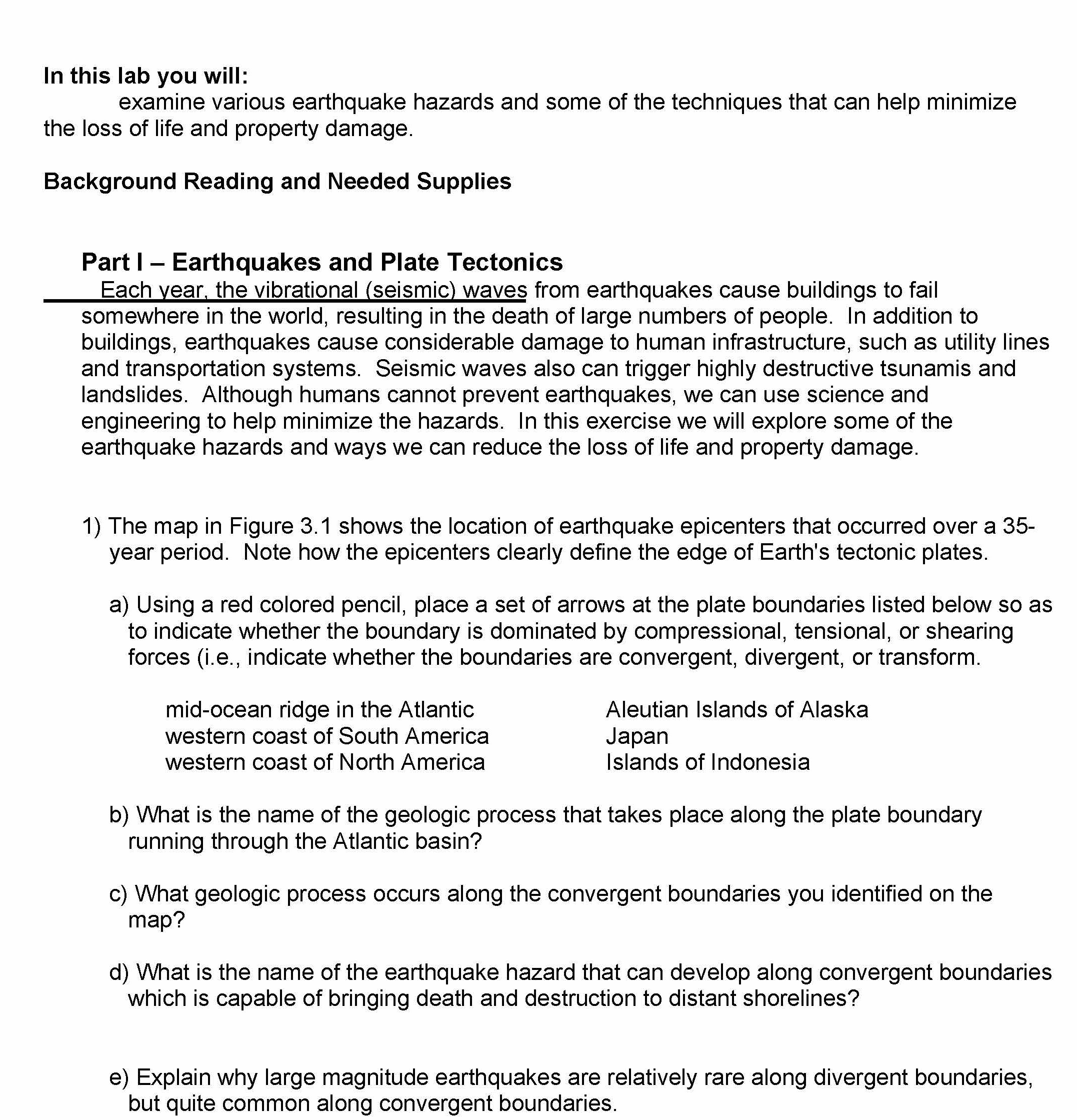 In this lab you will: examine various earthquake hazards and some...