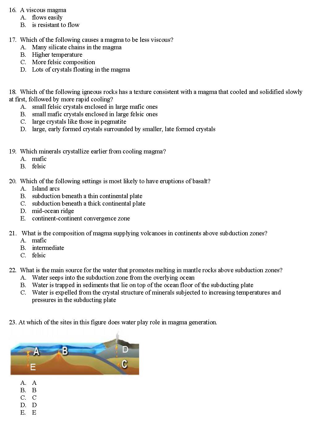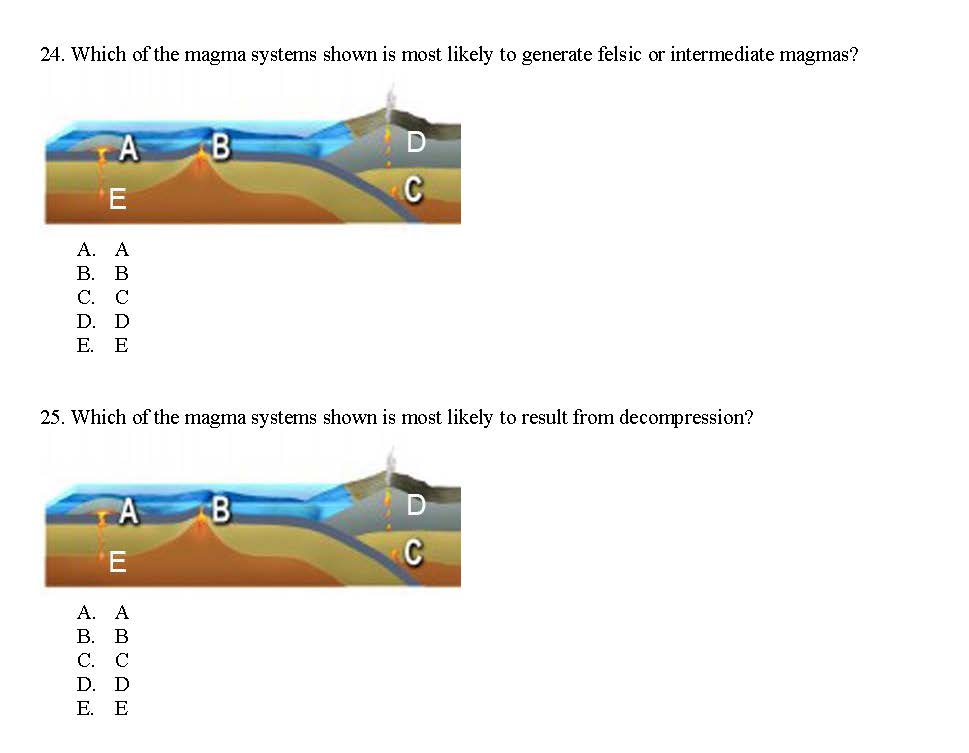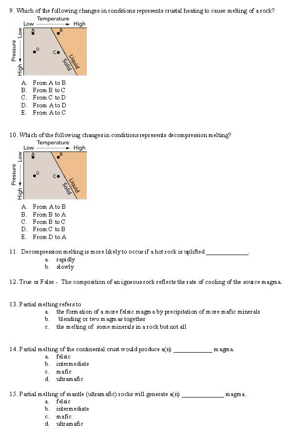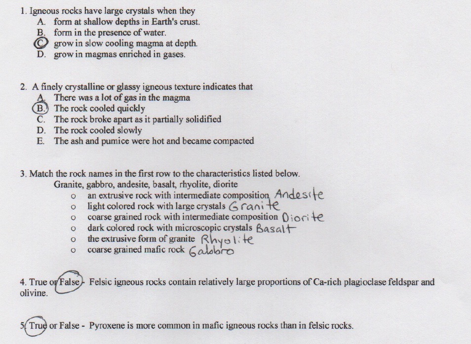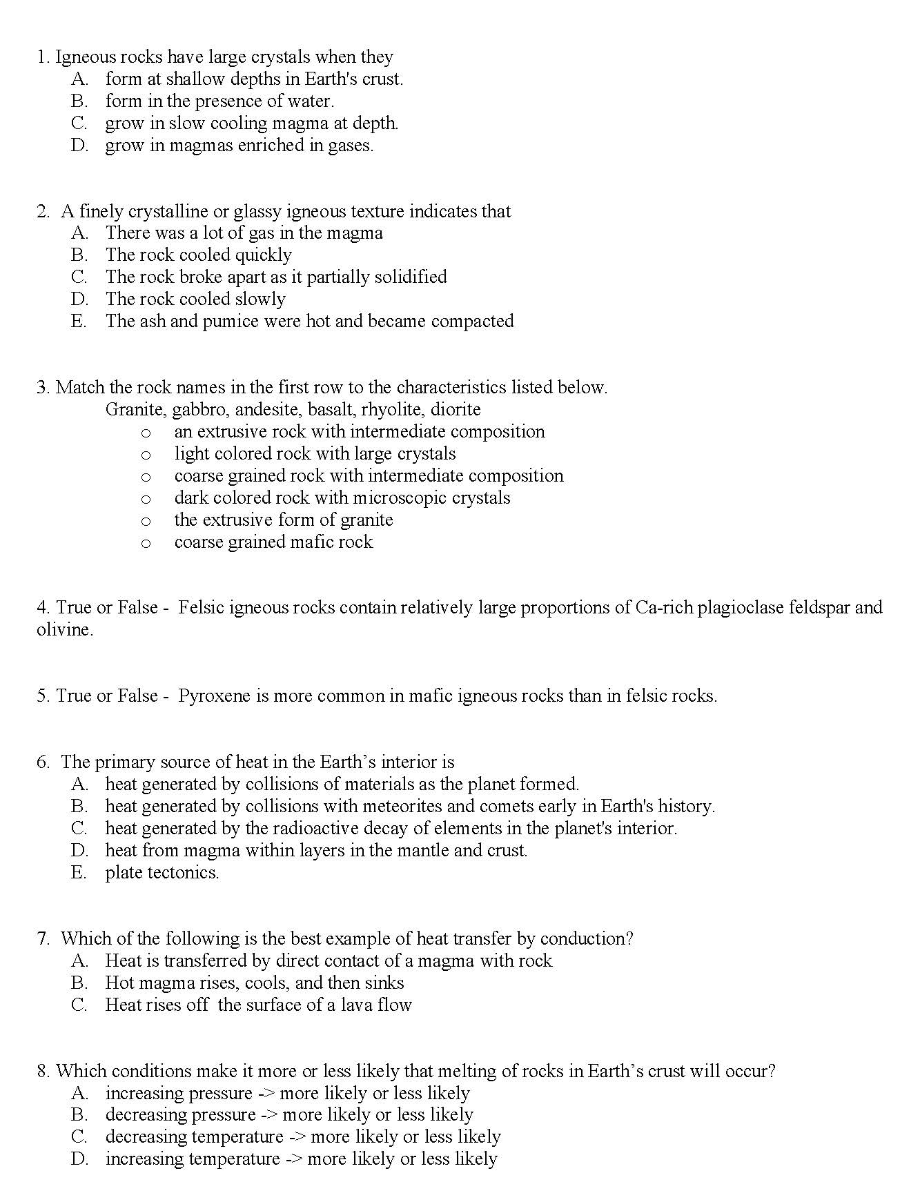 1. Igneous rocks have large crystals when they A. form at shallow...