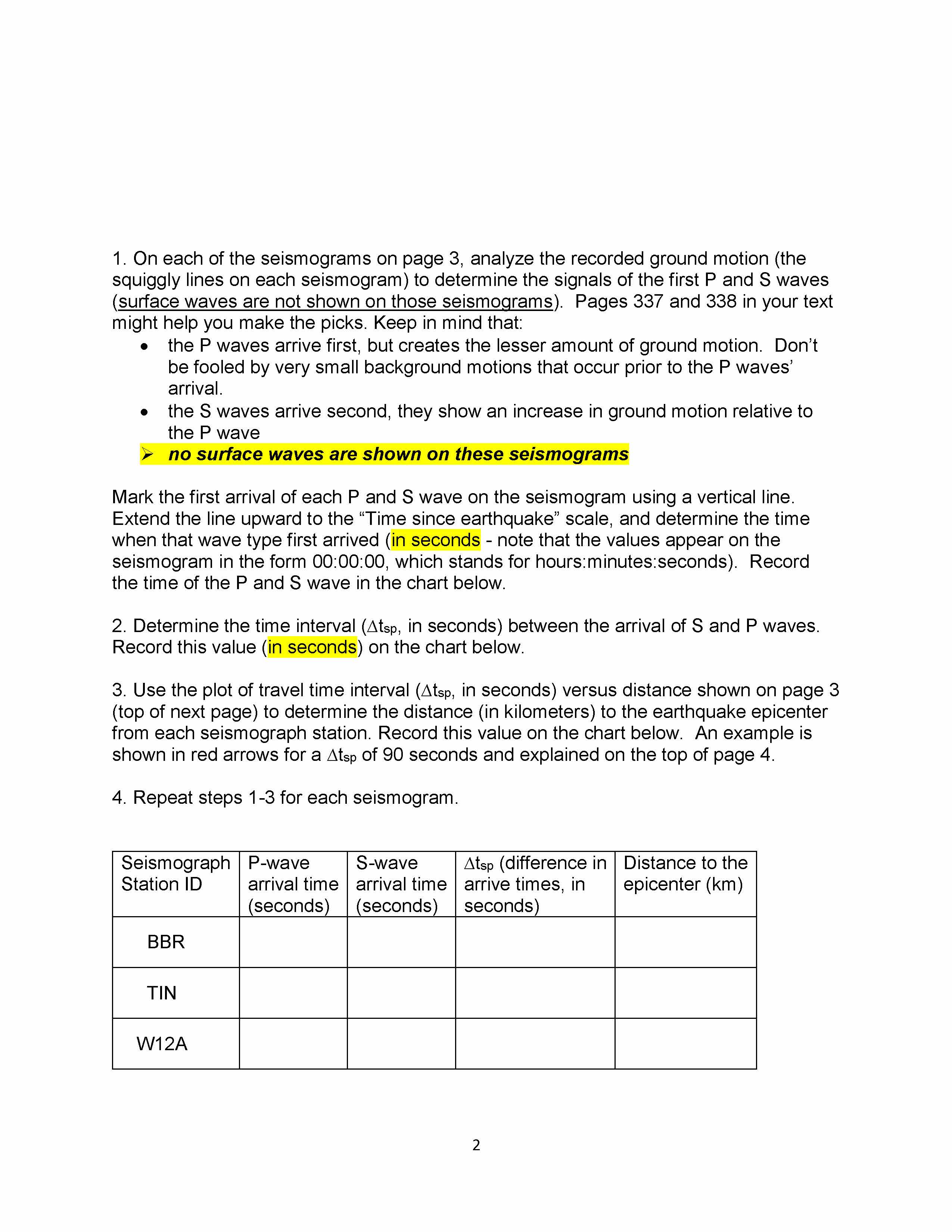 1. On each of the seismograms on page 3, analyze the recorded groun...