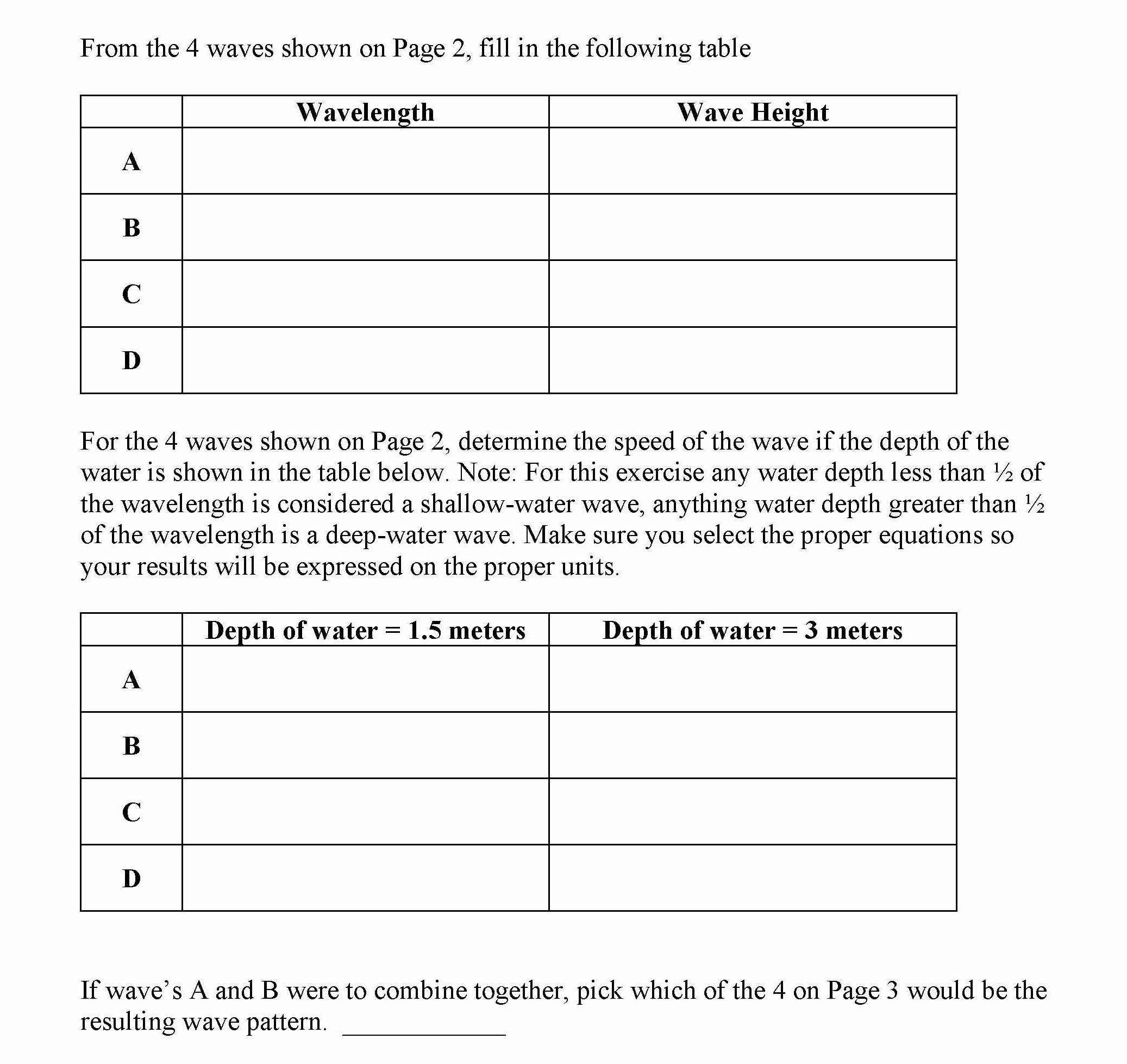 1 From the 4 waves shown on Page 2, fill in the following table W...