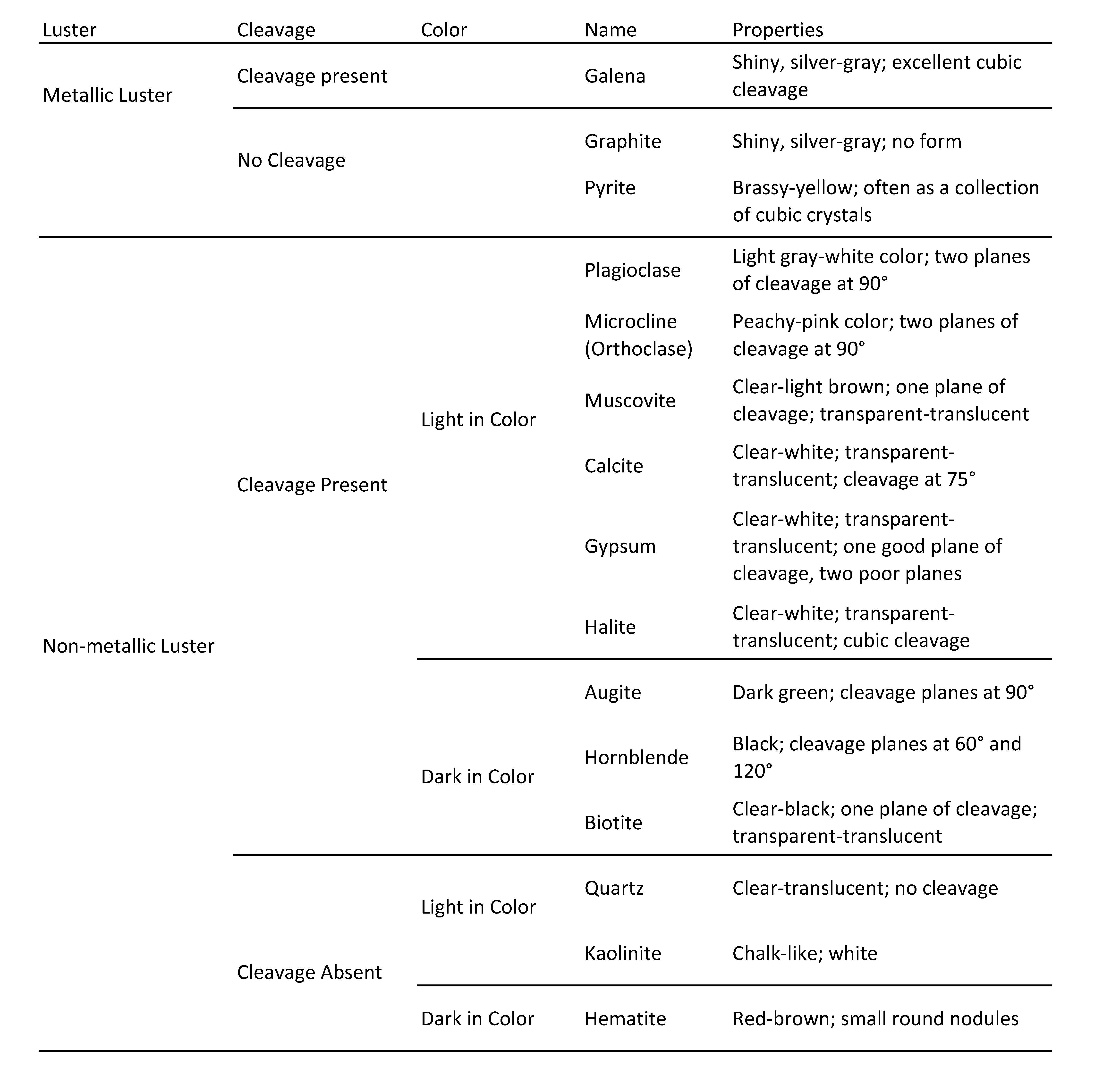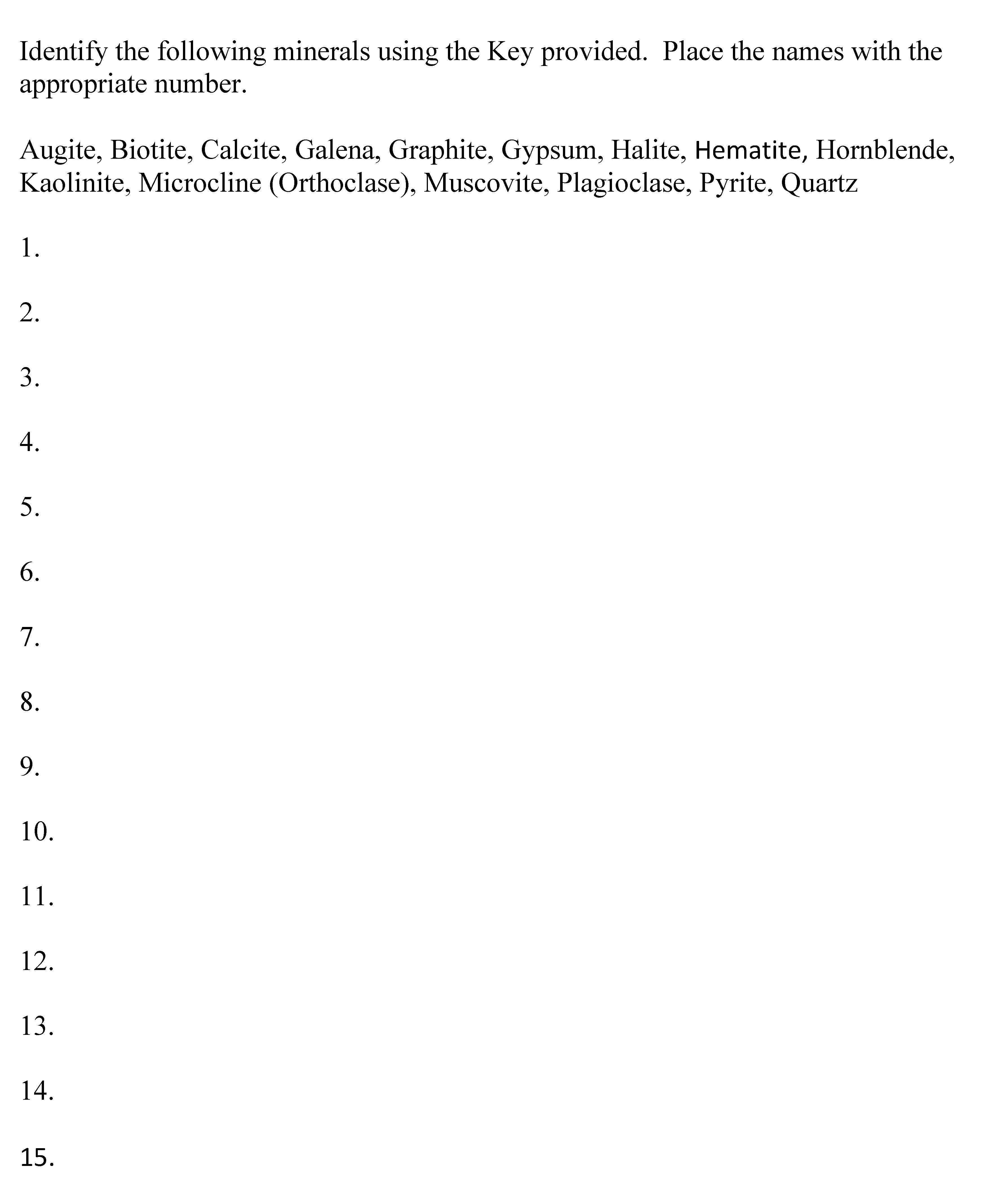 Identify the following minerals using the Key provided. Place the n...