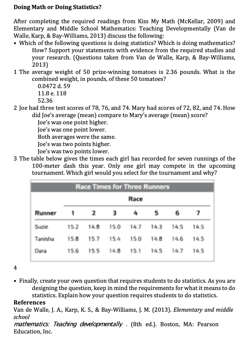 Doing Math or Doing Statistics? After completing the required read...