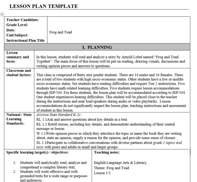Use the “Class Profile†and grade level text you selected to co...