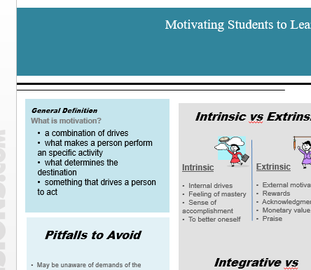 Make a PowerPoint Poster on the topic of Motivating Students to Lea...
