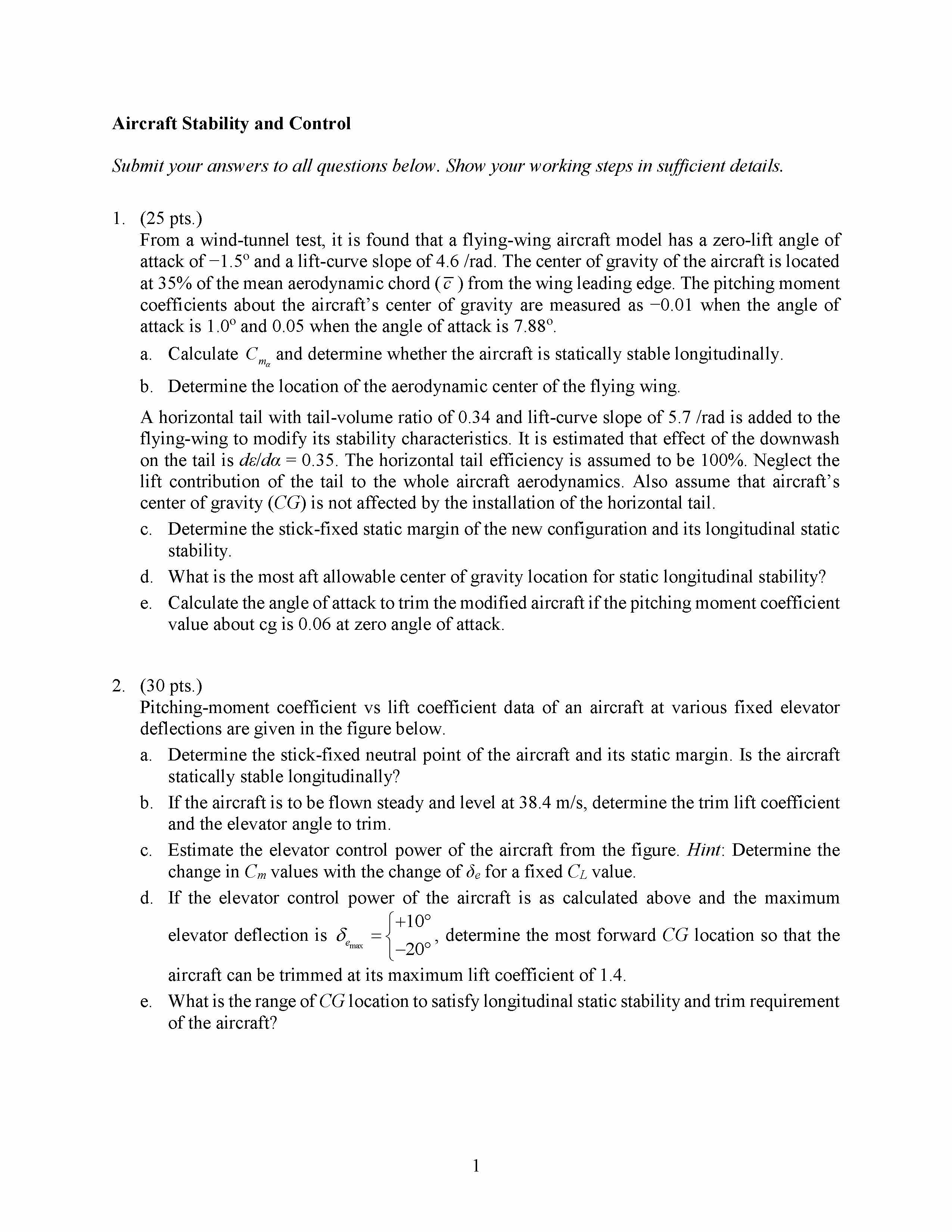Aircraft Stability and Control Submit your answers to all question...