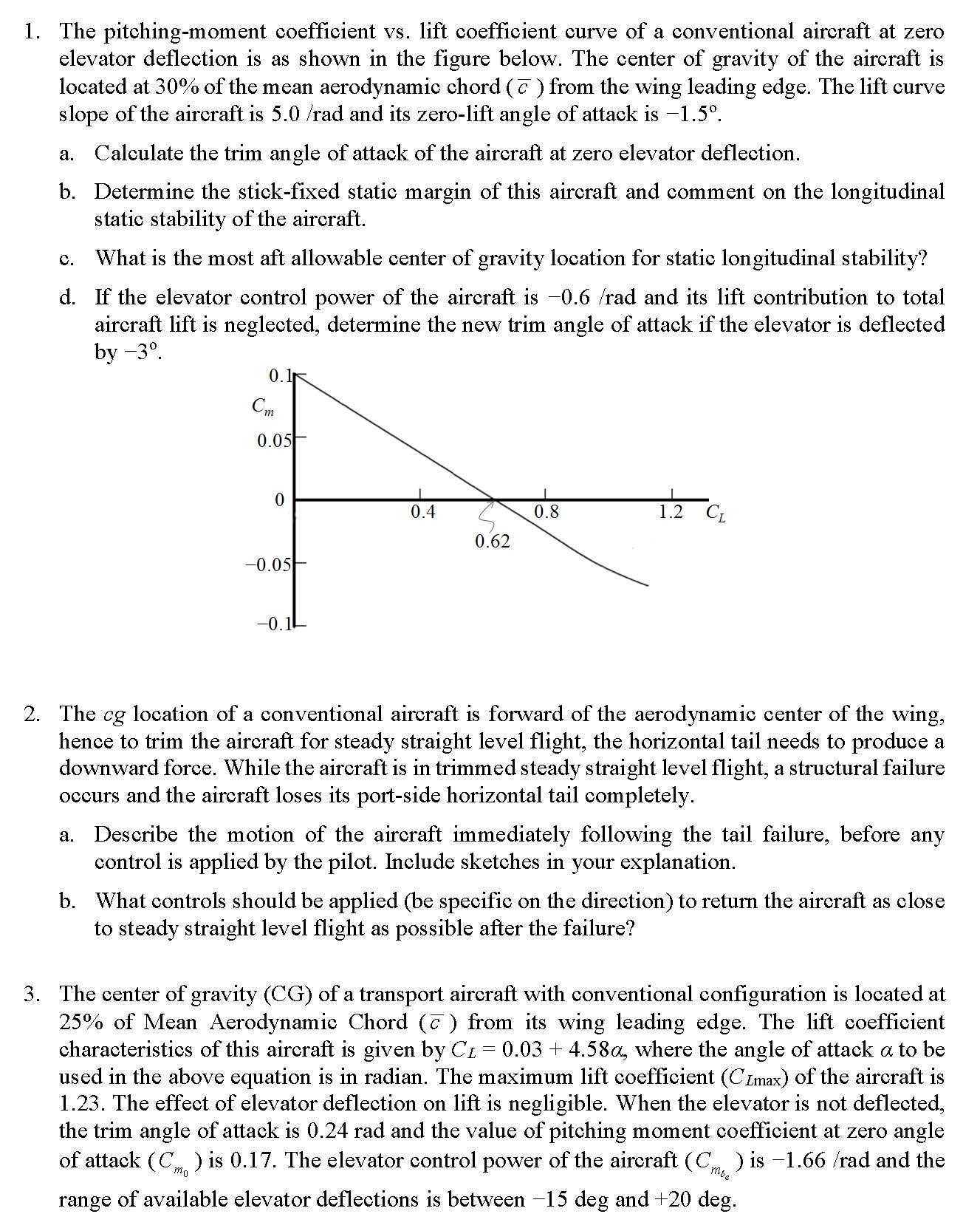 1. The pitching-moment coefficient vs. lift coefficient curve of a ...